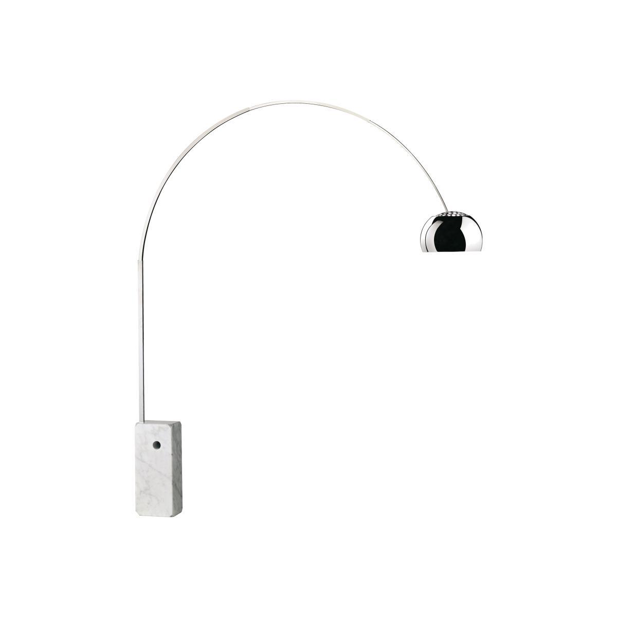Designed by Achille Castiglioni in 1962 and crafted by FLOS, the Arco floor lamp is an iconic example of 20th century design that has now garnered legendary status. Inspired by an urban streetlight, Arco is a versatile, free-standing floor lamp specially designed to bring overhead illumination to a space without the need for mounted fixtures, or the having to walk around the light source. Its genuine Carrara marble base acts as a counterbalance for the arched stainless steel stem, which is adjustable up to 215cm to suit your preferences - whether casting a warming glow over a dining table or illuminating your favourite reading chair. A polished aluminium shade covers the halogen bulb, which completes this technically innovative and visually appealing floor lamp. With a contemporary structure and classic marble accents, the Arco floor lamp creates a sculptural display within its surroundings. Its influence has reached far and wide, featuring in such iconic films as 'Diamonds Are Forever', while maintaining its practicality as an ambient and direct light source that would illuminate an array of interiors perfectly. Praised by our founder Sir Terence Conran as a "truly inspired piece of design," the Arco Floor Lamp would lend a touch of contemporary design to any space. Requires: 1 x Max 8W E27 bulb