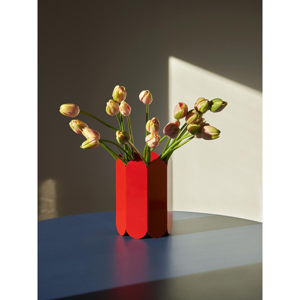 The Arcs vase 25 cm from HAY is made of stainless steel and creates a unique look in the home due to its arched edges. This vase is an excellent base for both colourful bouquets and dried flowers in earthy shades and is a perfectly eye-catching detail in the window or on the set table. Use this Arcs vase with candlesticks from the same series for a coherent look.