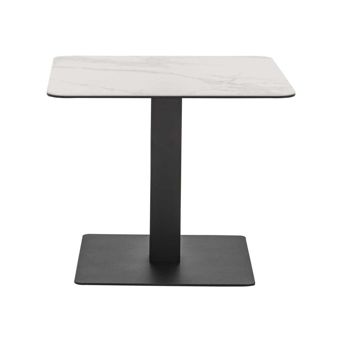 The contemporary Arctic collection features matt-finished Italian ceramic tops with powder-coated metal accents – an on-trend combination that’s sleek and sophisticated while offering a hint of urban cool. Designed for modern living, the pieces in this collection are compact in scale and have ergonomic space-saving features. Boat-shaped dining tables have crossed-leg pedestal bases and unique swivel extension mechanisms. Velvet-upholstered dining chairs are set on slender metal legs and swivel smoothly for your diners’ convenience. A selection of sideboards and occasional tables completes this stylish collection. A Furniture Village exclusive. Stunning Italian ceramic lamp table. Powder-coated metal pedestal base. Sleek contemporary style that’s compact in scale. Take a look at the Arctic lamp table and we think you’ll agree – small is definitely beautiful. This stylish end table features a stunning top made of white Italian ceramic with an on trend matt finish. The top, which is square with gently curved corners, rests on a modern pedestal base made of black powder-coated metal. The perfect place for a table lamp or to place at a sofa arm to hold reading material, the Arctic lamp table combines style with utility. The Arctic lamp table is part of the Arctic collection of living room pieces and dining room furniture, all sized to fit perfectly into more modern homes. That aside, this is a collection that looks wonderful in all styles of décor, from traditional to contemporary. Complete the look with the other occasional tables in the range – the Arctic console table and the Arctic coffee table. The Arctic collection is only available at Furniture Village. Did you know?. Ceramic is highly durable, and heat and scratch resistant. Each ceramic top is individually made and will have unique and distinctive characteristics.