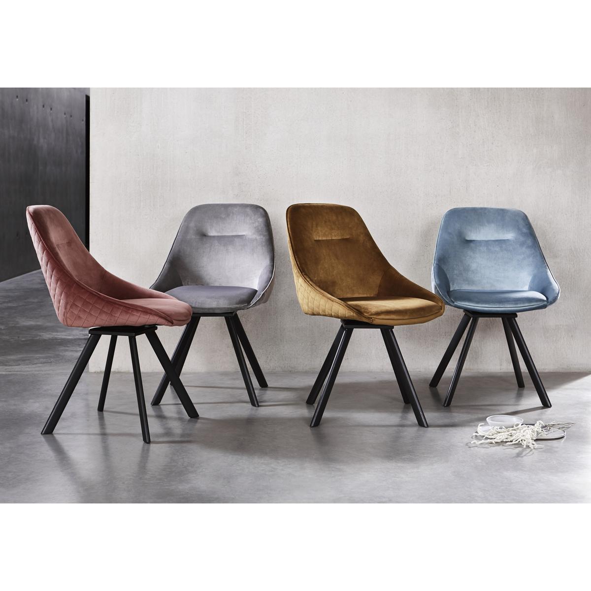 The contemporary Arctic collection features matt-finished Italian ceramic tops with powder-coated metal accents – an on-trend combination that’s sleek and sophisticated while offering a hint of urban cool. Designed for modern living, the pieces in this collection are compact in scale and have ergonomic space-saving features. Boat-shaped dining tables have crossed-leg pedestal bases and unique swivel extension mechanisms. Velvet-upholstered dining chairs are set on slender metal legs and swivel smoothly for your diners’ convenience. A selection of sideboards and occasional tables completes this stylish collection. A Furniture Village exclusive. Beautiful velvet-upholstered dining chair in a choice of colours. Cool, contemporary curved shape with feature stitching. Angled legs in powder-coated metal. A dining chair with accent chair style, the Arctic swivel dining chair looks as good as it feels. Beautiful curves provide your dining guests with back-hugging support, and the deep all-over cushioning ensures a very comfortable sit. This chair is upholstered in soft velvet in a choice of sophisticated shades. Mix and match colours for an on trend eclectic look or choose the hue that complements your dining décor. Set on slender angled legs made of black powder-coated metal, this dining chair features a simple grooved stitching detail on the inside back and diamond-patterned stitching on the outside back. The seat swivels, so it’s easier for diners to leave the table without asking other guests to move. The Arctic swivel dining chair is part of the extensive Arctic furniture collection. It’s designed to work with all styles of dining table, both classic and contemporary, but looks particularly stylish around the ceramic-topped Arctic extending dining table which is available in a choice of white and graphite finish. Only at Furniture Village. Please note. Velvet is a pile fabric and may show wear on areas of more use.