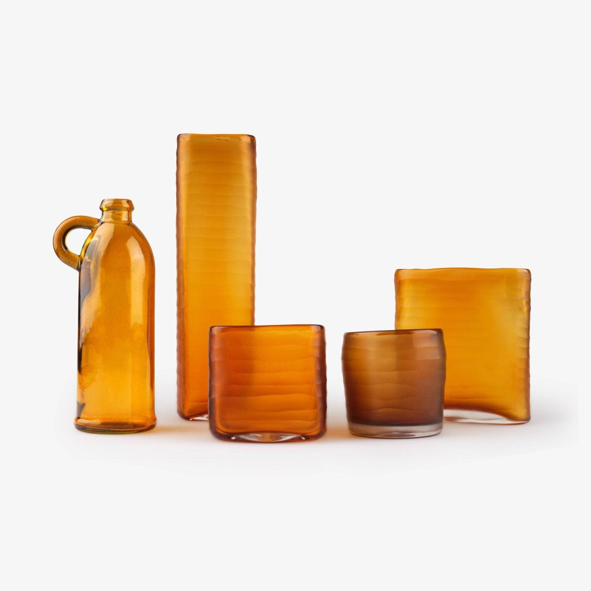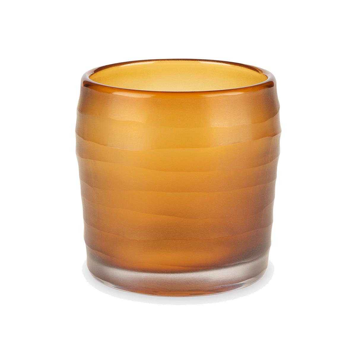 Our mini arctic rounded vase in amber is great to add texture to the room with its creative artistic wave-cut glass detailing that will delight any aesthete with its cascading design. The handmade contemporary style will easily work well with a mix of decors. Display with the rest of the arctic collection to create a coordinated look to the space.