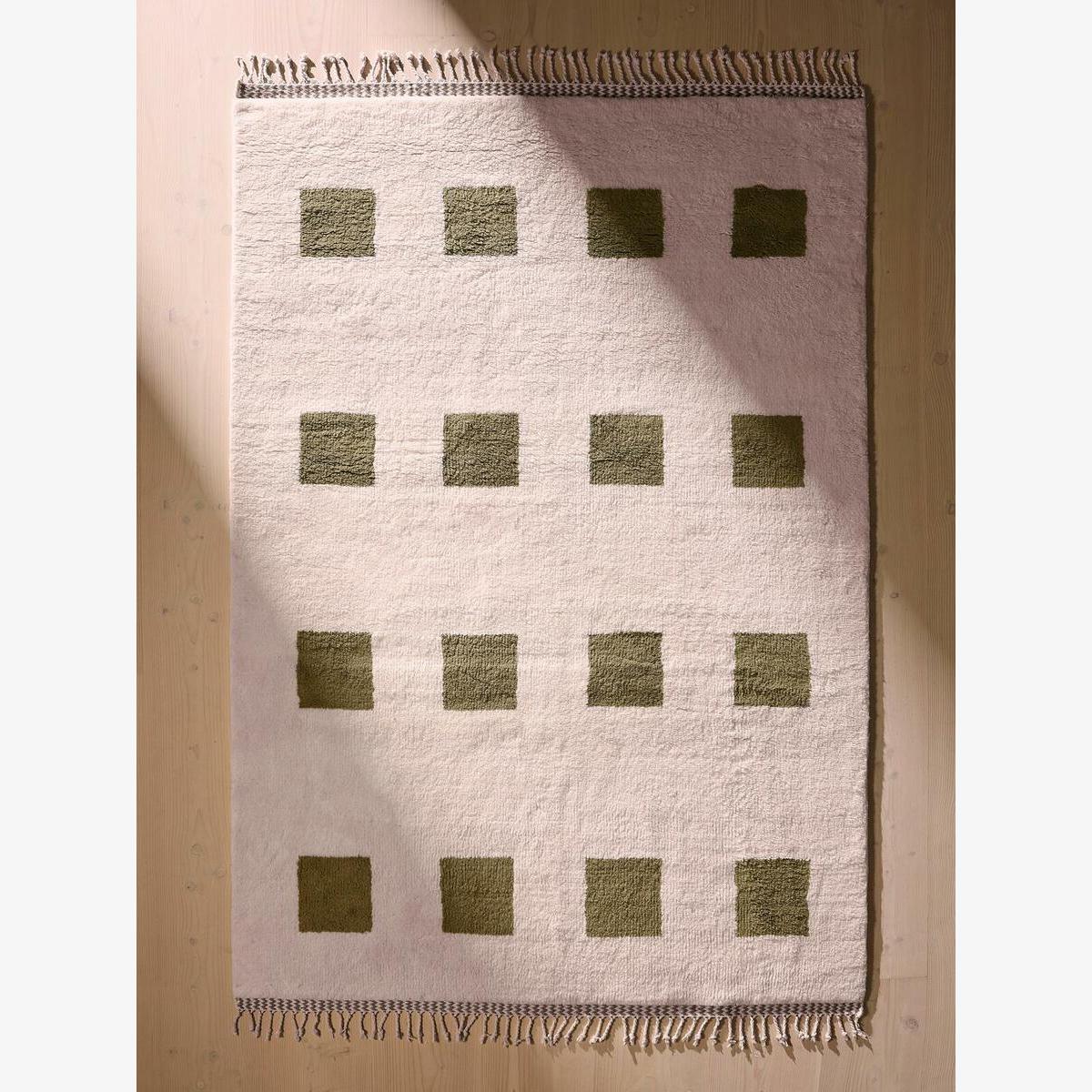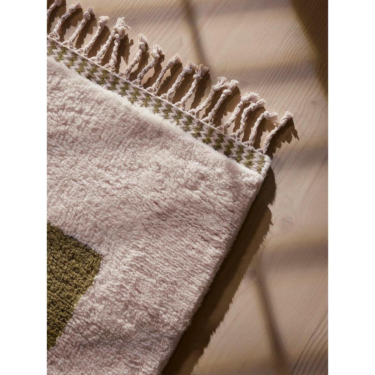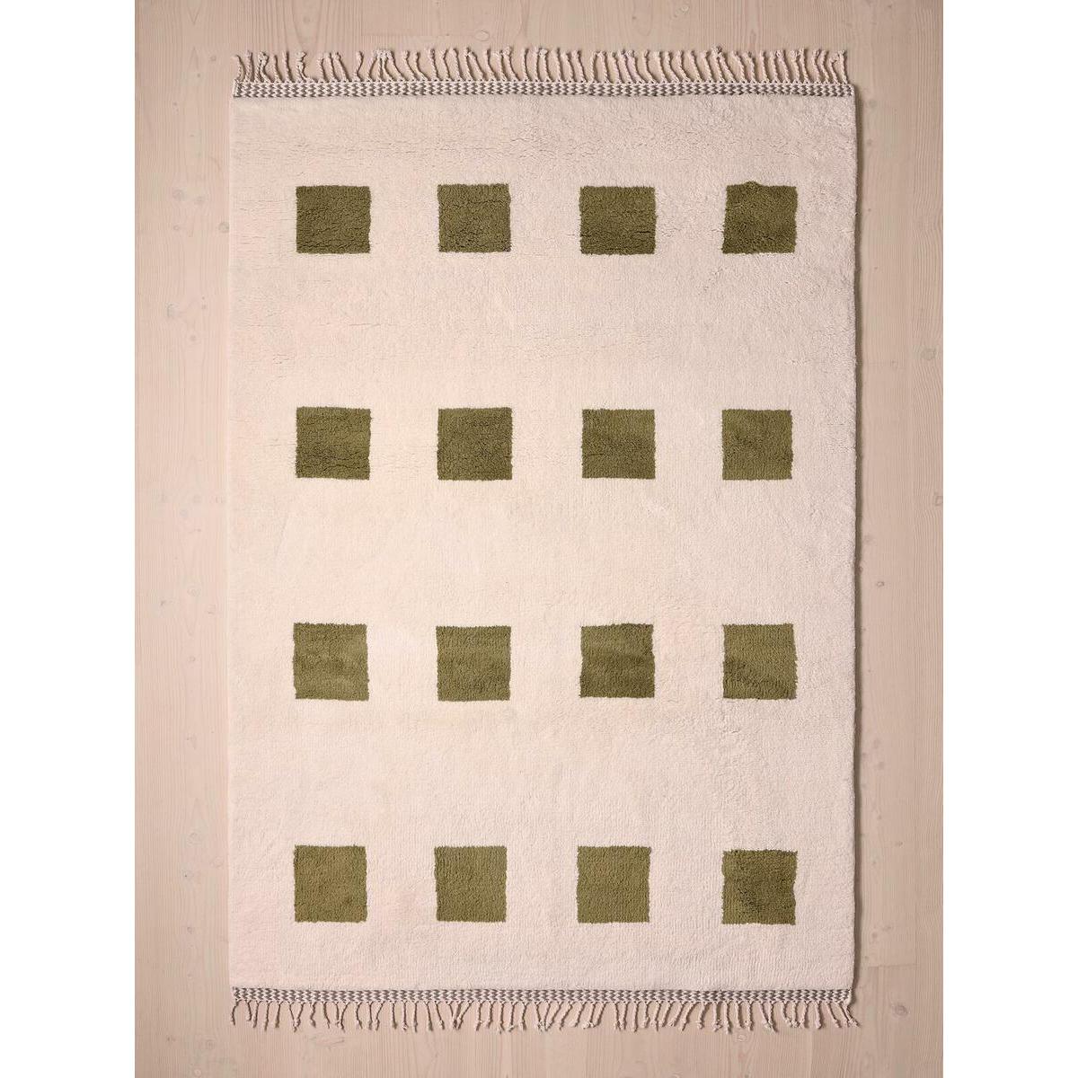 Our Arcus design is a nod to 1970s-era shag pile rugs. Hand-knotted by skilled artisans in India with 19 knots per square inch, it has a long New Zealand wool pile, which is warm and extremely soft underfoot, making it ideal for your first step out of bed or near the sofa. The repetitive square pattern takes influences from the architectural shapes and colour palette of Soho House Rome. Hand-knotted rug Nod to 1970s-era shag pile rugs 100% New Zealand wool long pile 19 knots per square inch Geometric olive square pattern Designed in-house Inspired by the architecture and colour palette of Soho House Rome