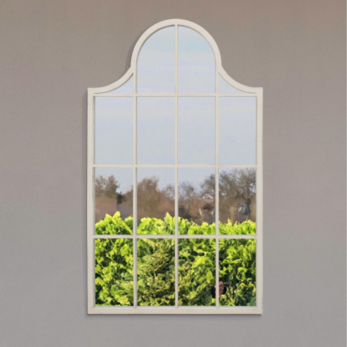 Arcus Window Metal Framed Arch Garden Wall Mirror - White