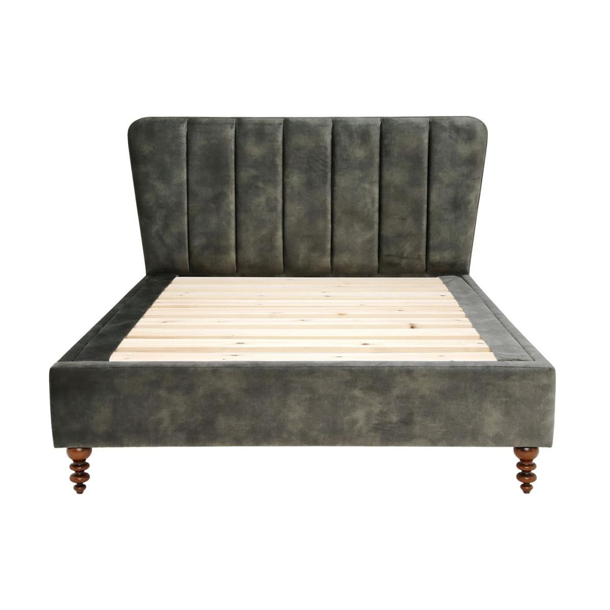 I really like this bed frame for its clean, sophisticated silhouette and plush, vertical tufting that adds subtle texture without overwhelming the space. It works well in contemporary or minimalist interiors, especially when paired with neutral tones or soft textiles to create a restful atmosphere. For styling tips, consider layering tactile bedding and a few statement cushions to soften the look or introducing a cosy throw at the foot of the bed. The dark, plush upholstery anchors the room, making it a versatile piece that complements both sleek modern décor and more eclectic, layered schemes. Its understated elegance makes it an easy anchor for your bedroom design while remaining comfortably inviting.
