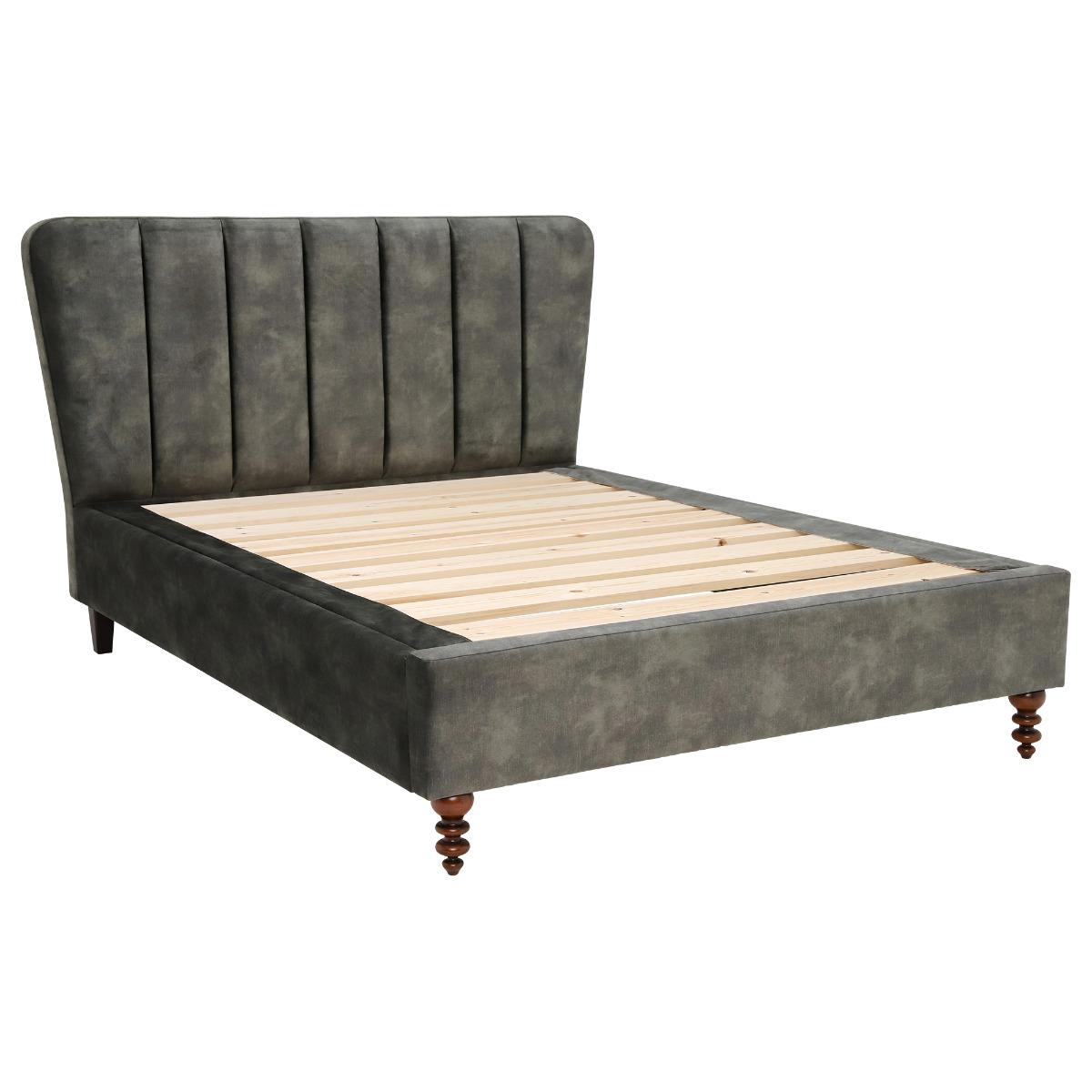The ideal way to make your guests feel at home, or an indulgent means of refreshing your sleep space, the Ardant Bed Frame has a glorious modern-traditional design that makes the most of a curvaceous, grooved headboard, plush velvet upholstery, and delicate legs. A sure means of grounding a bold modern decor, or a simple way to spice up a minimalist interior, the Ardants vintage-inspired look can be customised with a gorgeous choice of fabric and foot style to create the ideal match for chosen colour palette. Shown in Lovely Asphalt with Hepburn Turned Front Legs.