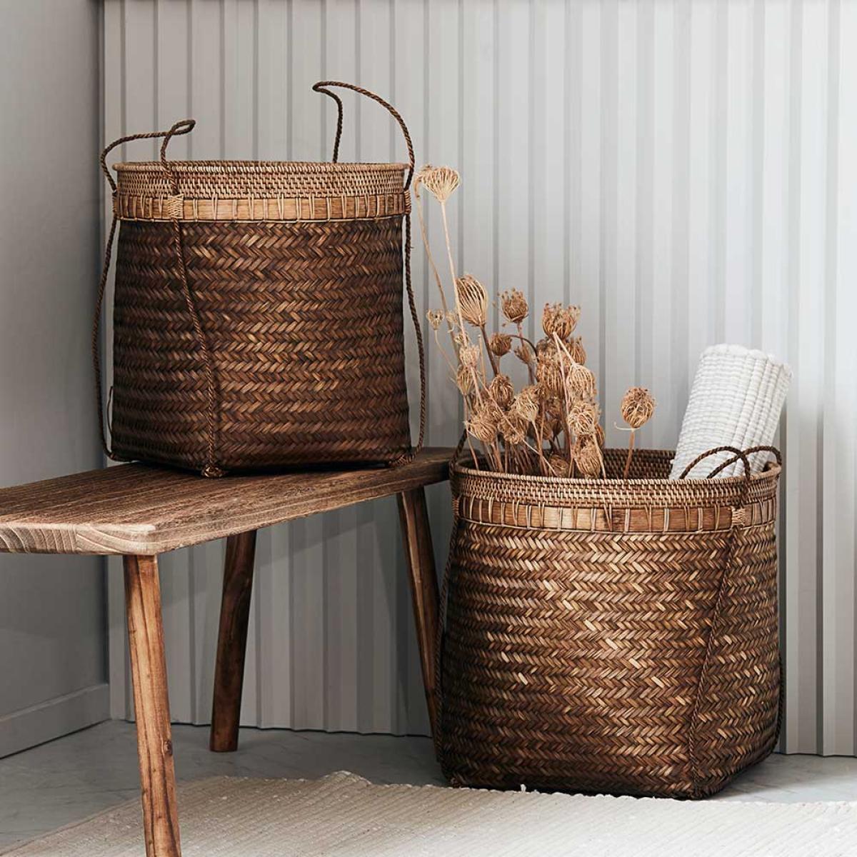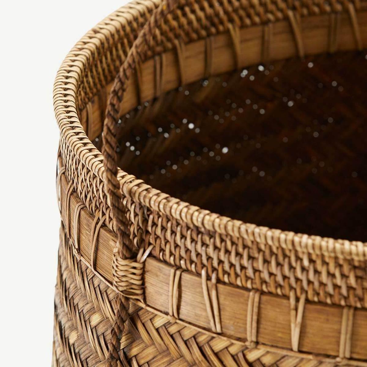 Stylish and practical! These handwoven baskets made of durable and patterned bamboo and rattan weave are a core addition to your home storage. Add an artisan touch with this large woven planter, and update your living space with the golden brown colours these baskets offer. This basket is perfect as storage, or a stylish rattan planter.