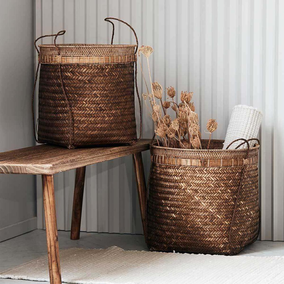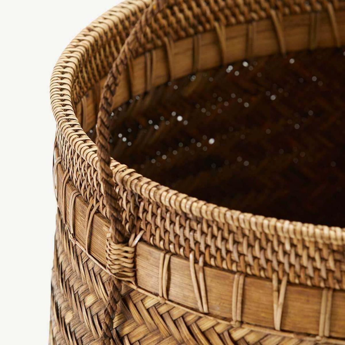 Stylish, and practical! This handwoven basket made of durable and patterned bamboo and rattan weave is a core addition to your home storage. Add an artisan touch with this medium woven planter, and update your living space with the golden brown colours these baskets offer. These baskets are perfect as storage, or a stylish rattan planter.