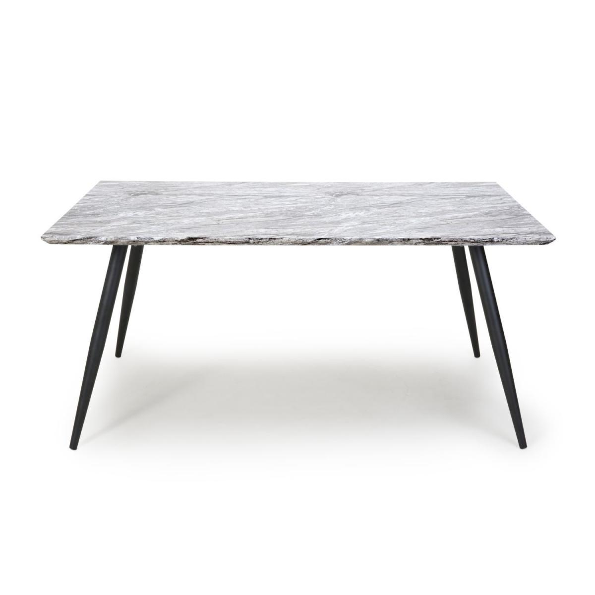 With a distinguishing grey marble effect top and Scandinavian styling, the Arden dining table instantly gives your dining area a contemporary feel. The powder coated finish of the legs combined with the smooth marble effect melamine top gives you a very sturdy, durable table and at 160cm it will comfortably seat 6 people. This dining table will add that extra touch of style to your home and nicely coordinates with various home decors and dining chairs.