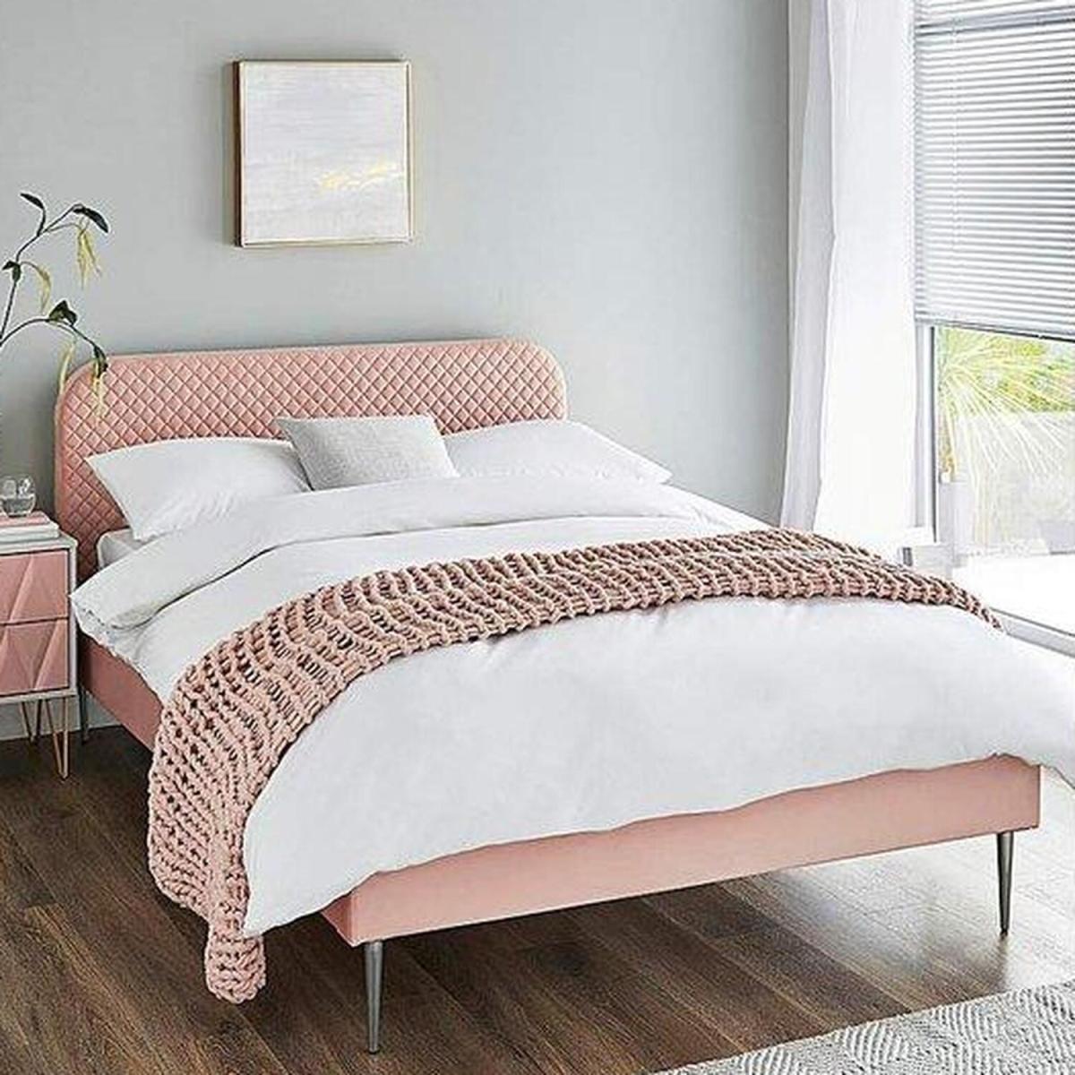 The Arden Quilted Bed is the perfect style and comfort for your bedroom. The elegant diamond quilting on the rounded headboards will add a touch of sophistication to the room. The velvet-like fabric is soft, smooth and luxurious to the touch, keeping you cosy and comfortable while you sleep. Additionally, the low footend allows for more open space in your room, keeping it spacious and airy. The slimline chrome-effect feet give the bed an added contemporary edge, making it perfect for anyone looking for a modern yet comfortable bed that will complement their bedroom's aesthetic. With its elegant design and premium quality material, the Arden Quilted Bed is a piece of furniture you'll cherish for years to come. Please note this is a large item and boxes may arrive in 2 separate deliveries.