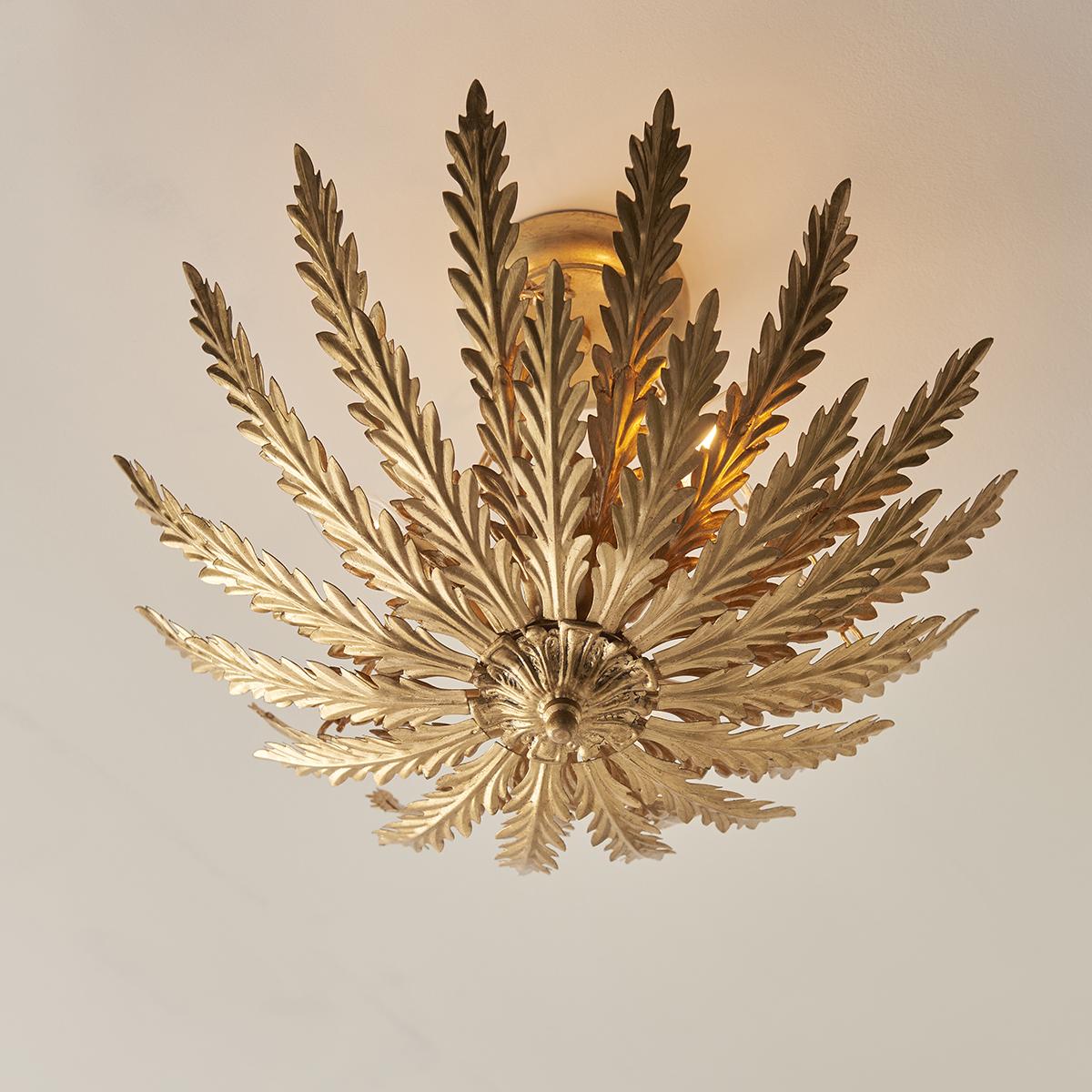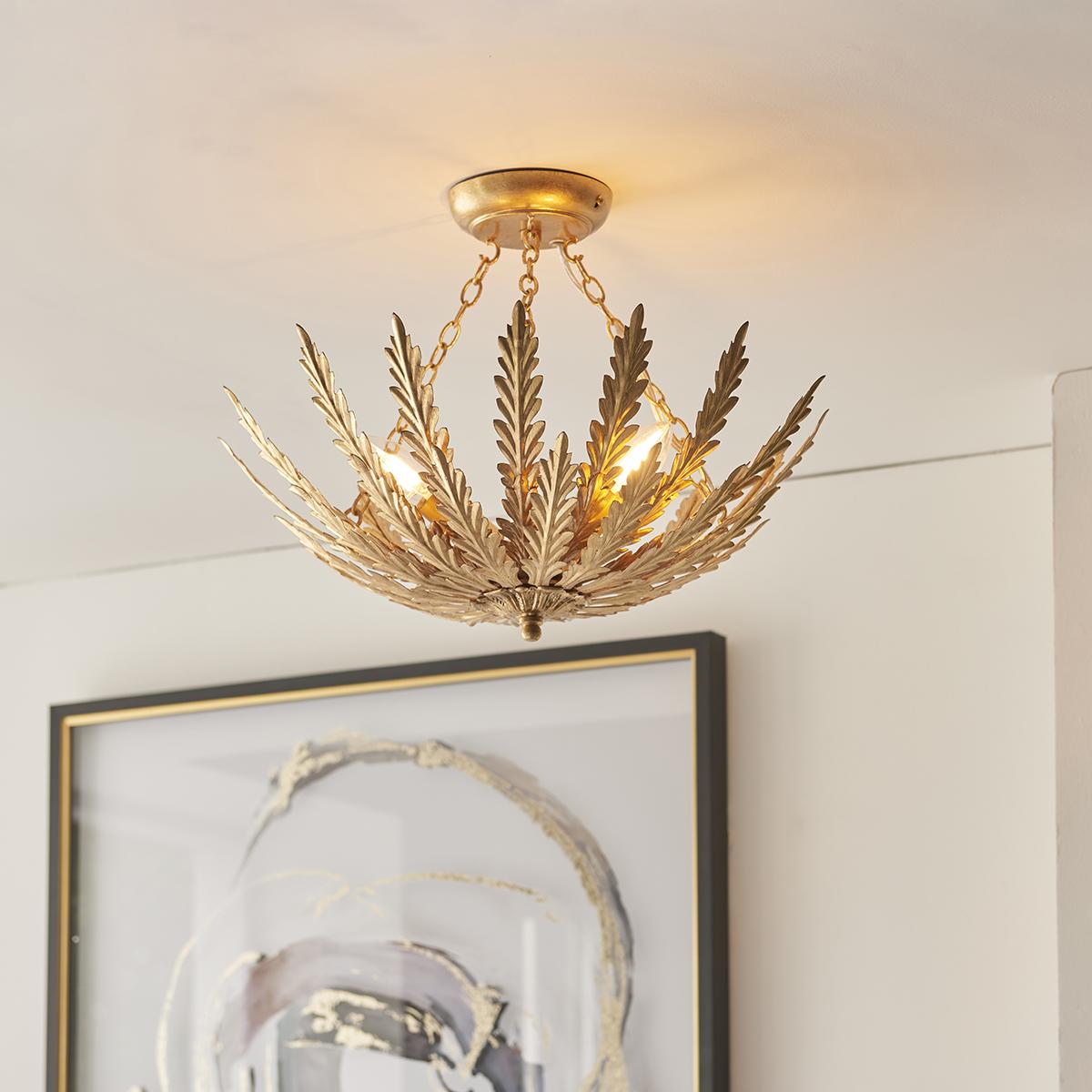 I love the Arden flush light for its eye-catching gold leaf finish and sculptural design, which adds a touch of glamour and sophistication to any space. It works particularly well in interiors with a luxe or vintage-inspired aesthetic, such as a regal dining room or an elegant hallway. When styling, consider pairing it with warm-toned furnishings or textured fabrics to enhance its gold accents. For practical tips, ensure the ceiling height is adequate for its semi-flush design so the fixture doesn't overwhelm the space. It also makes a great statement piece in smaller rooms where a chandelier might be too much but you still want a luxurious focal point.