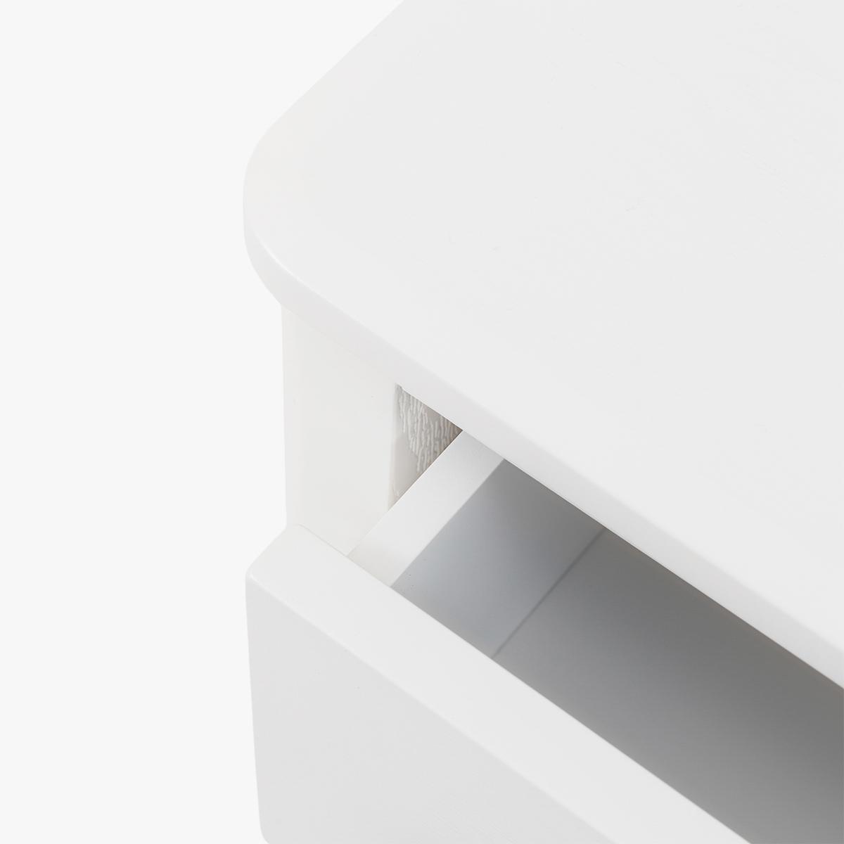 I love this bedside table because of its clean, minimalist design and versatile white finish, making it easy to incorporate into a variety of interiors. It works particularly well in Scandi-inspired or contemporary bedrooms, adding brightness and a sense of calm. To style it practically, I recommend keeping a few essentials like a small lamp, a book, or a simple decorative accessory on top, while the drawers can hold less visually appealing items out of sight. Pairing it with soft textiles or metallic accents can elevate its look, but overall, it’s a practical and stylish piece that offers a neat storage solution without cluttering the space.