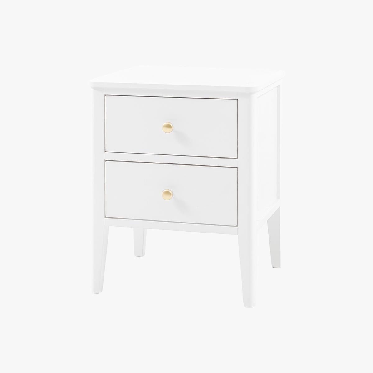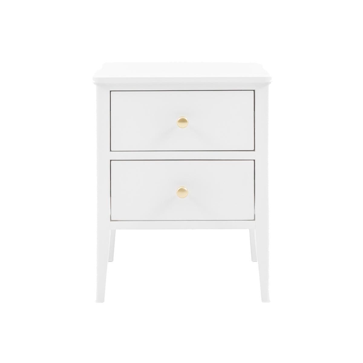 Discover the allure of the Ardena range. With a bright white wood finish and radiant gold handles, this bedside table makes a striking addition to a bedroom. Featuring two spacious drawers that offer ample storage for bedside essentials, this table is not only stylish but also keeps your space effortlessly organised. Perfect as a standalone statement or styled with the wider Ardena collection.