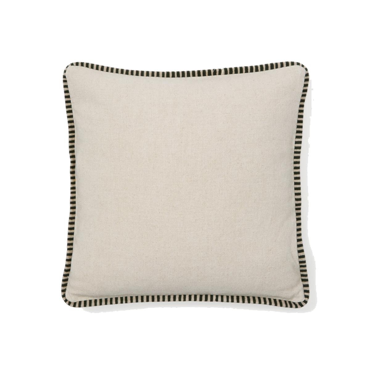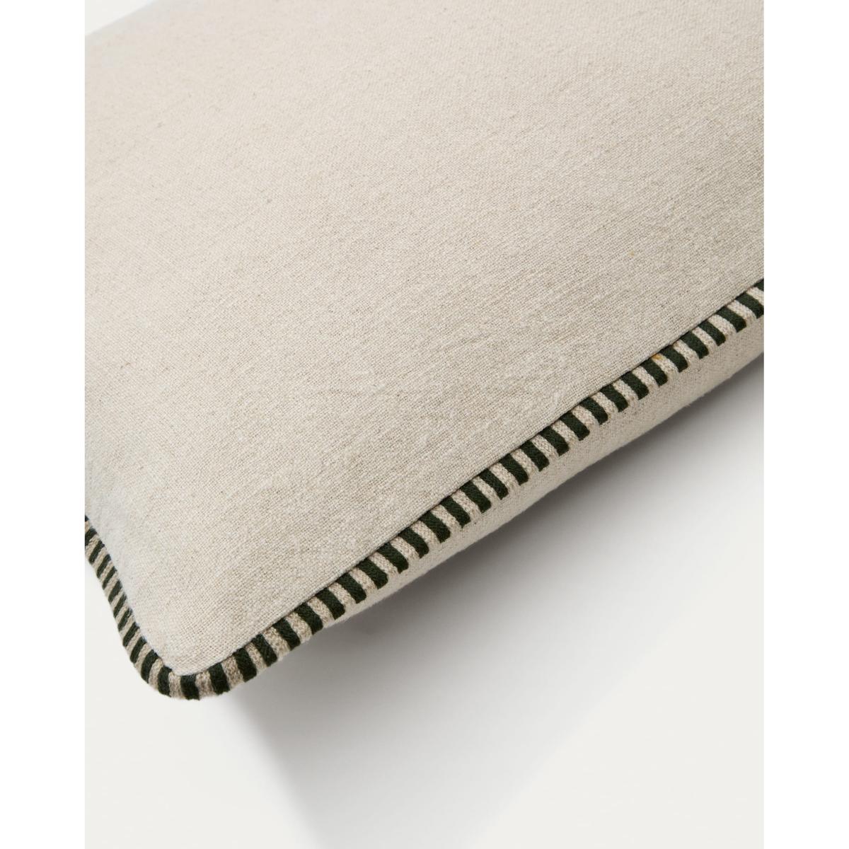 Ardit beige linen and cotton cushion cover contrasting green embroidered stripe, 45 x 45 cm
