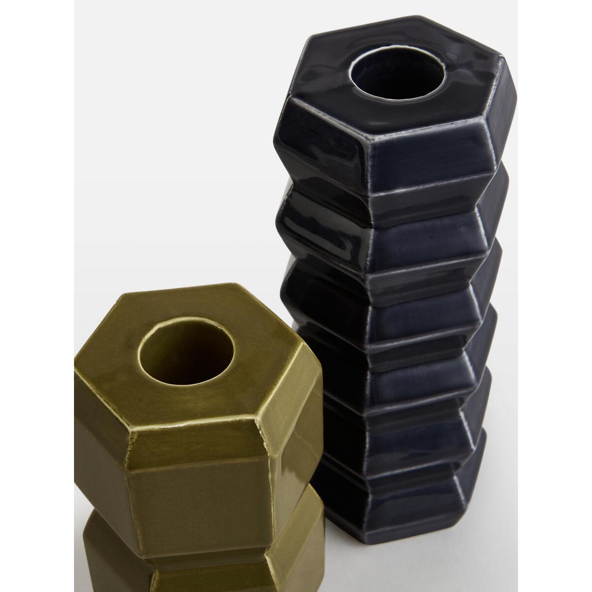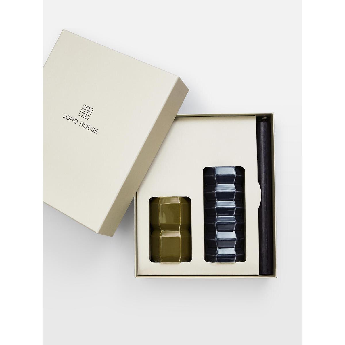 Inspired by the vintage-inspired interiors of Shoreditch House,the Ardmore Candleholder Gift Set includes candleholders in navyand olive, with matching dinner candles. Each one is handmade in. Portugal, and designed in earthenware with an organic silhouetteand a translucent glaze that gives added depth to their hues. Ardmore Candleholder Gift Set. Set of two (includes matching dinner candles). Glazed earthenware. Handmade in Portugal. Vessels inspired by Shoreditch House.