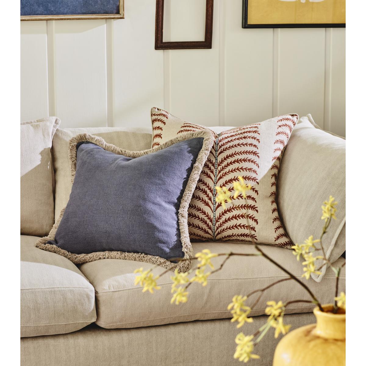Elegant palm fronds stack up to form a timeless print upon the surface of the Areca Cushion Cover. Block-printed by hand on a neutral fabric, the soft, leafy pattern lends a natural touch – with a hint of formality – to a sitting room or study, or enhances the tones of a plant-filled garden room.