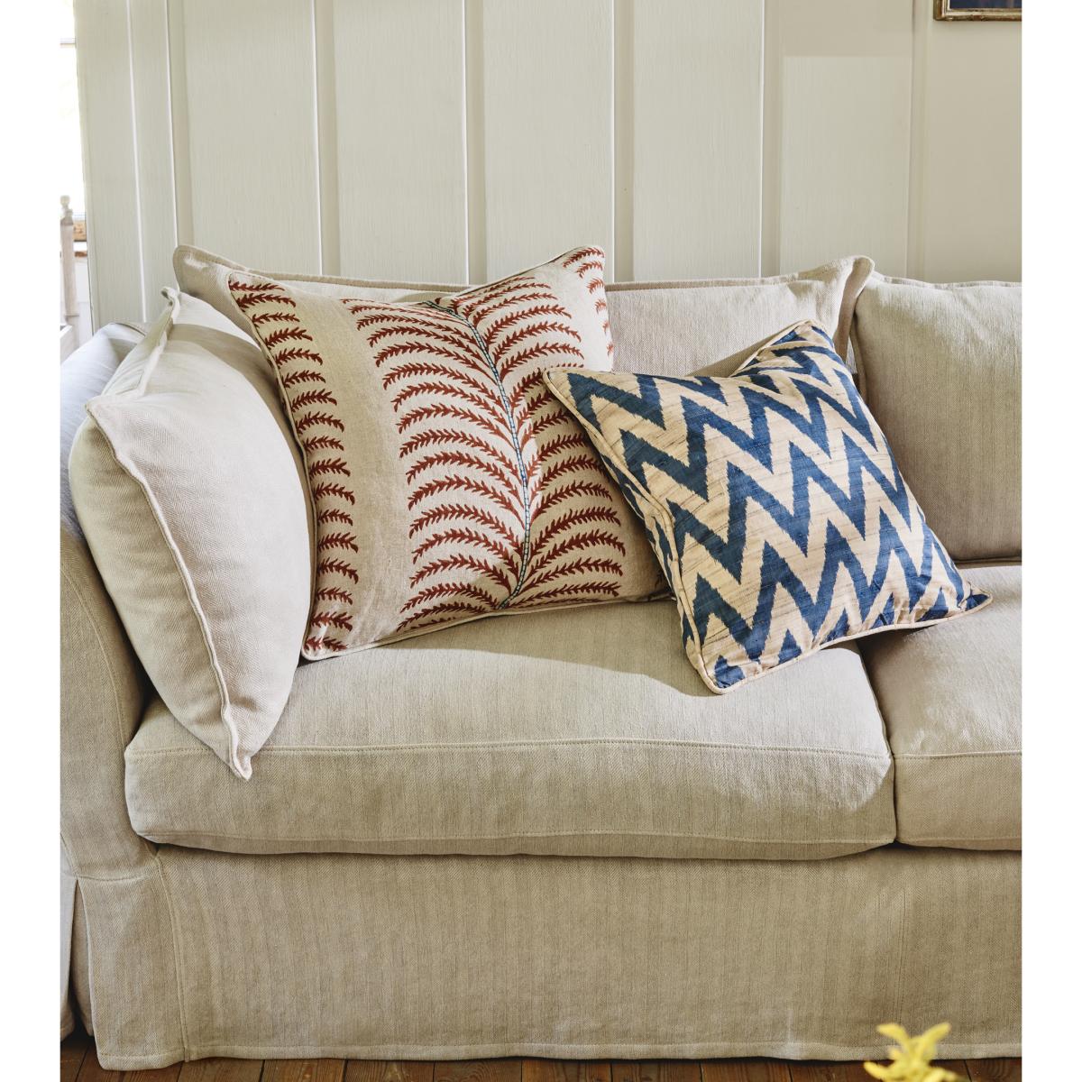 Elegant palm fronds stack up to form a timeless print upon the surface of the Areca Cushion Cover. Block-printed by hand on a neutral fabric, the soft, leafy pattern lends a natural touch – with a hint of formality – to a sitting room or study, or enhances the tones of a plant-filled garden room.