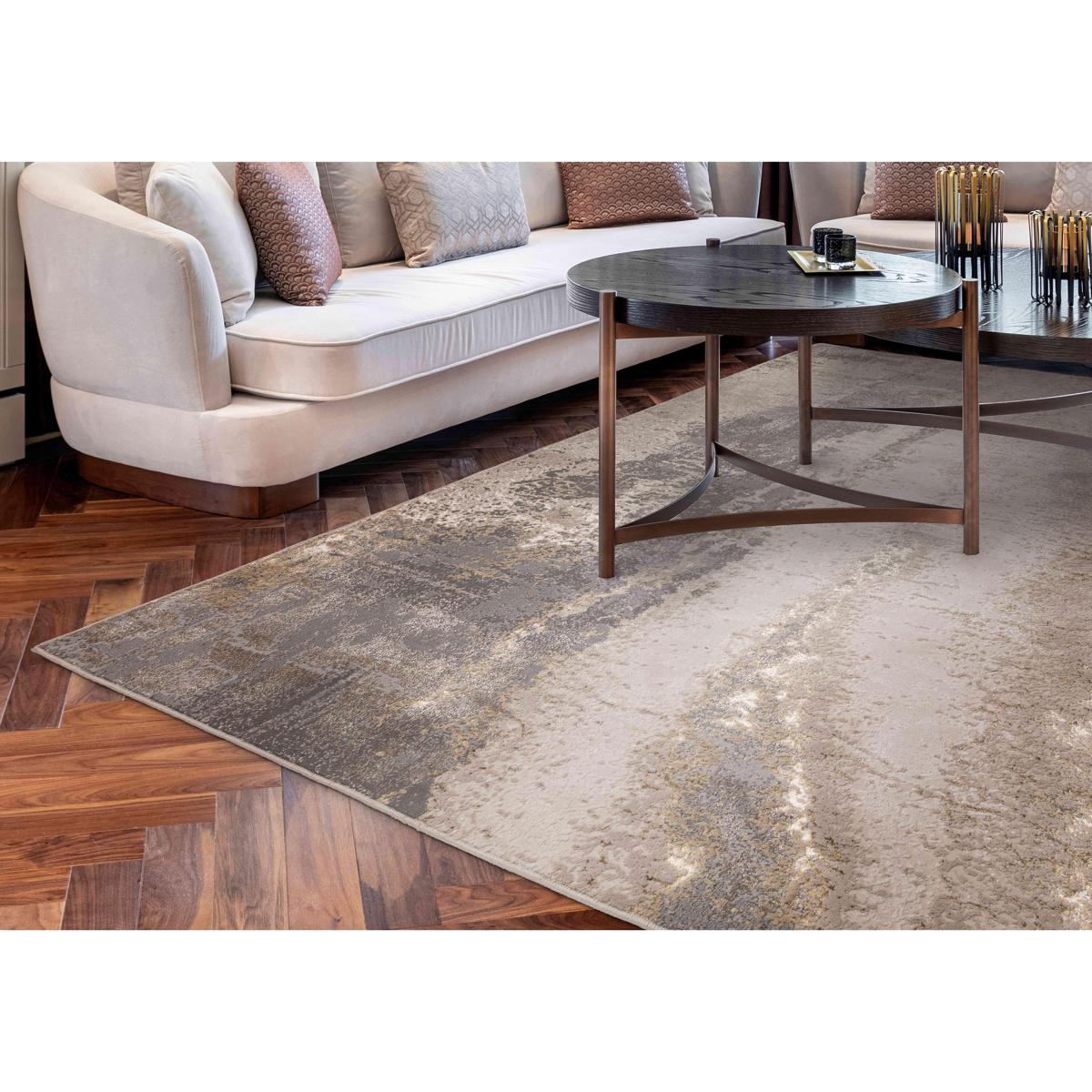 This bold abstract rug is a must for any modern interior. Its subtle tonal colour palette is the perfect way to highlight favourite furniture pieces. Very hardwearing with a dense pile. Why you'll love it A sophisticated rug for your contemporary home. Abstract design in tonal shades. In a palette of modern neutrals that merge and meld. Striking high-shine finish. Dense shallow pile is so warm and cosy underfoot. In a range of sizes. Only available online. This rug is part of the Furniture Village home accessories collection. What you need to know Durable polyester and propylene blend. 8 mm pile height. For indoor use only. Blot spillages immediately with a dry, absorbent white cloth or paper towel. Specialist cleaning recommended for stains.