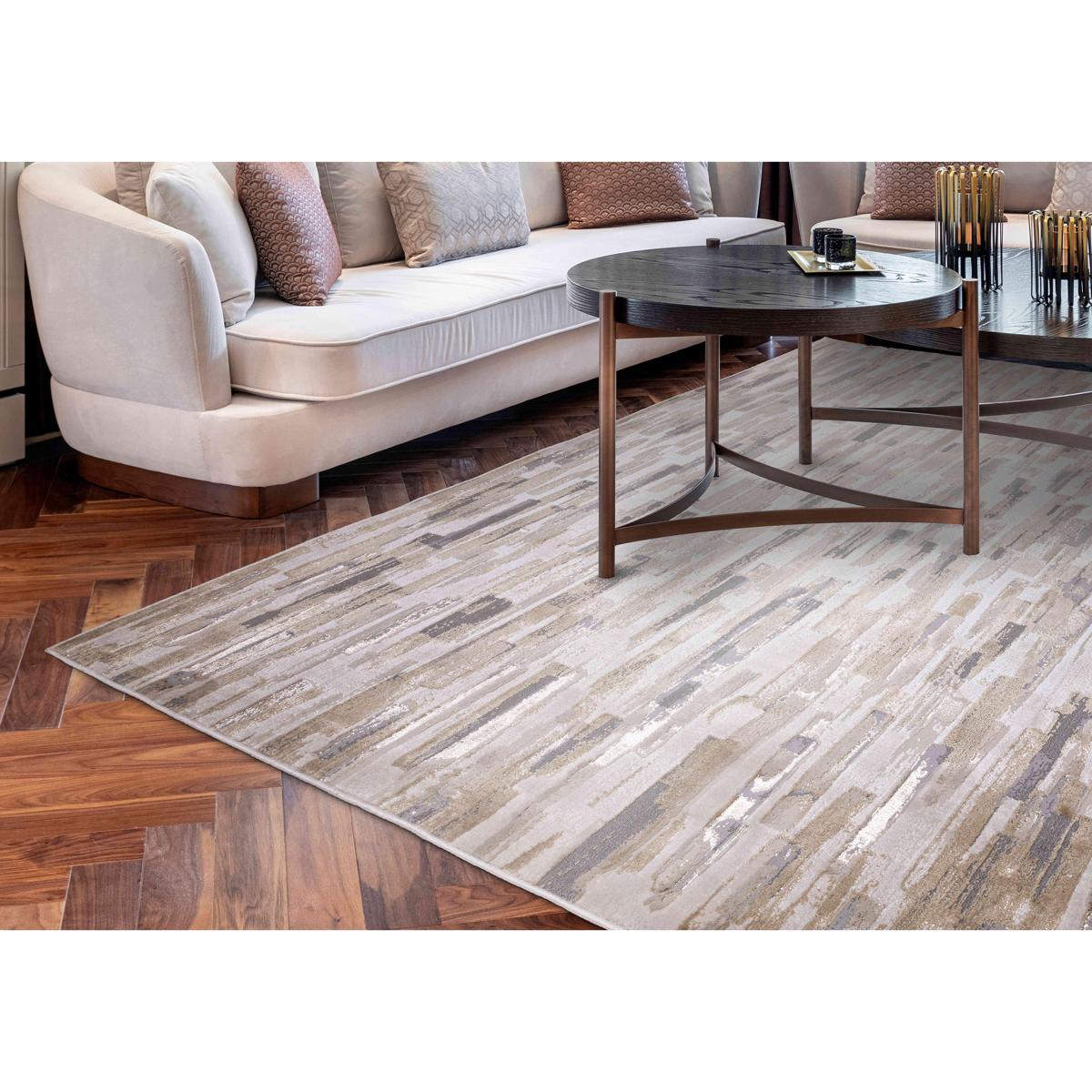 Like a work of art for your floor, this beautiful Impressionism-inspired rug has a lovely textural quality and uses tone and colour to wonderful effect. Why you'll love it Inspired by Impressionism, this beautiful rug’s design is beautiful and enigmatic. Powerful abstract design. Warm and sophisticated colour palette of modern neutrals. Striking high-shine finish. Dense shallow pile is so warm and cosy underfoot. In a range of sizes. Only available online. This rug is part of the Furniture Village home accessories collection. What you need to know Durable polyester and propylene blend. 8 mm pile height. For indoor use only. Blot spillages immediately with a dry, absorbent white cloth or paper towel. Specialist cleaning recommended for stains.