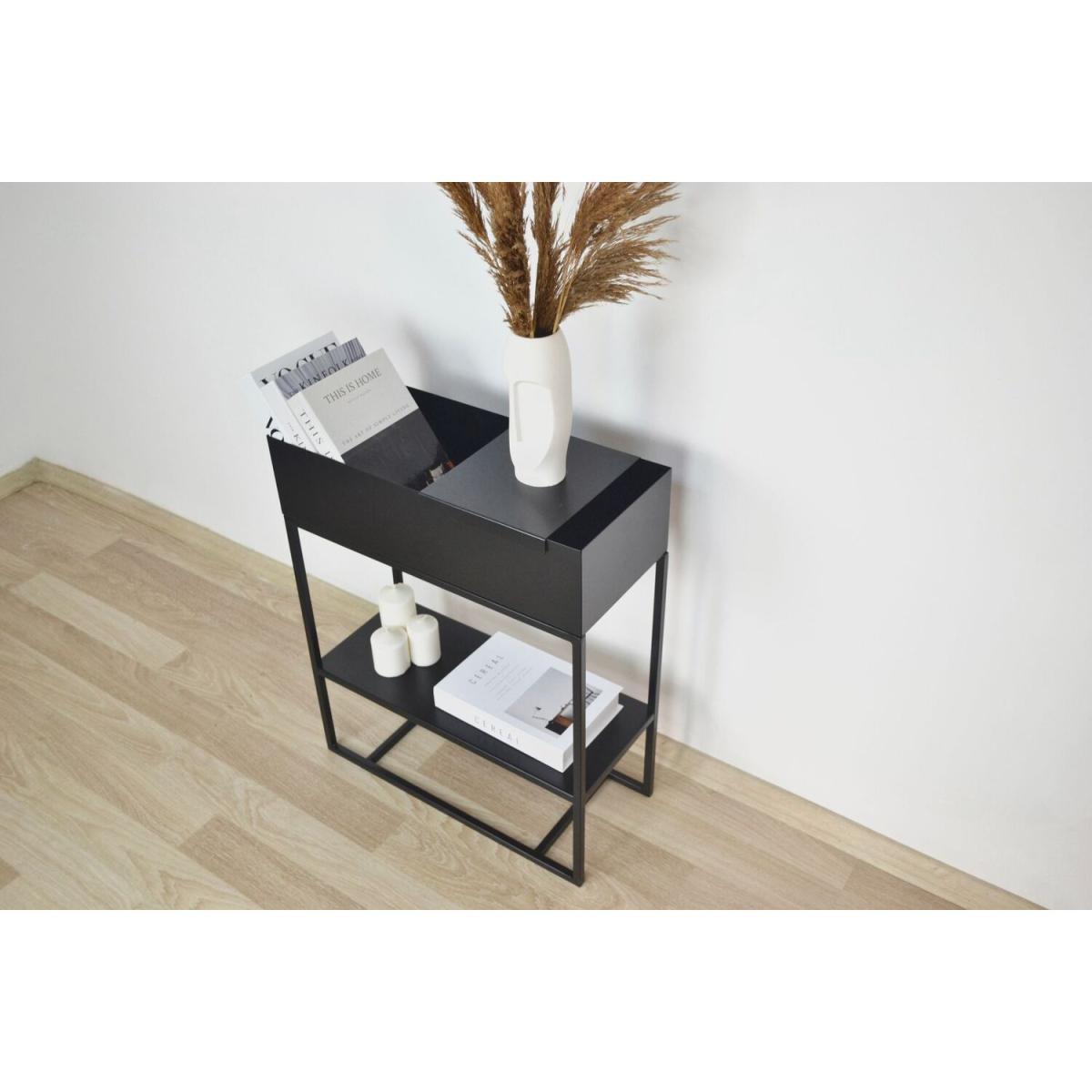 I love this piece because of its sleek, modern design that lends itself well to a variety of interiors, from contemporary to industrial spaces. The black finish adds a sophisticated touch, making it a versatile addition to hallways, living rooms, or even bedroom corners. When styling, consider contrasting textures like a light ceramic vase or metallic accents to make it stand out, or keep it minimal with a single statement piece for a clean look. Practical tips include using it to display everyday essentials, such as keys or mail, while keeping the surface uncluttered for an organised feel. Its understated elegance and functional design make it a smart choice for adding both style and practicality to a variety of homes.