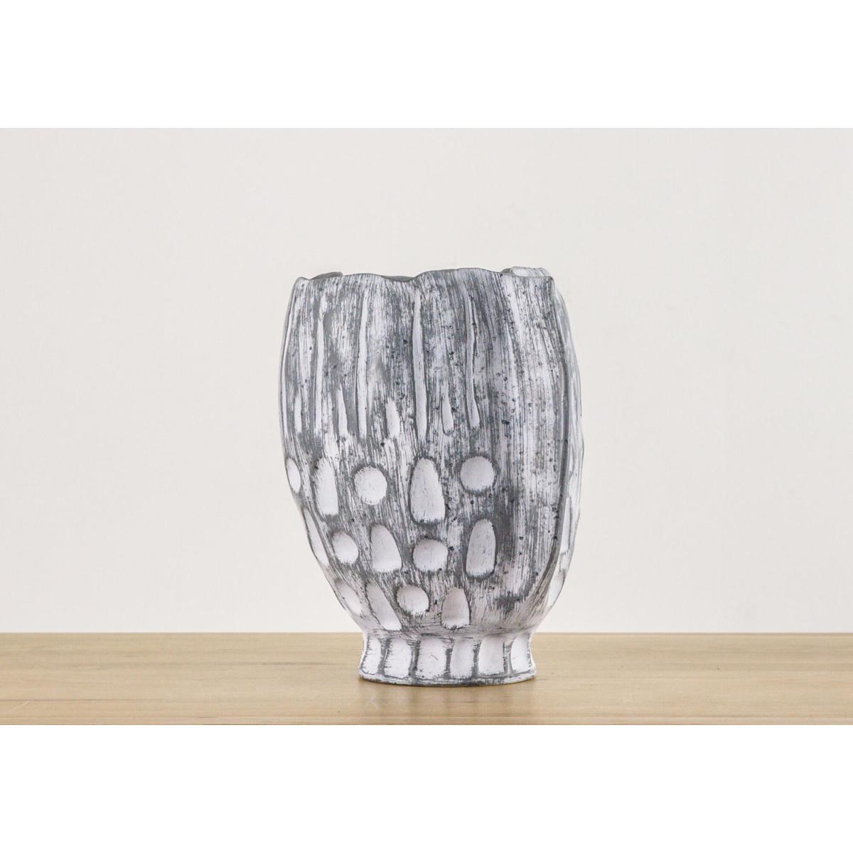 I love this large Ares Grey Cloud vase for its striking, textured finish that adds a subtle organic feel to any space. Its versatile grey hue makes it suitable for both modern and rustic interiors, and its generous size works well as a statement piece on a console table or in a hallway. When styling, consider keeping the arrangement minimal-perhaps just a few long stemmed grasses or dried botanicals-to let the vase’s unique surface shine. It’s practical too, offering enough space for more substantial floral arrangements or branches, making it both a functional and aesthetic addition to contemporary and eclectic interiors alike.