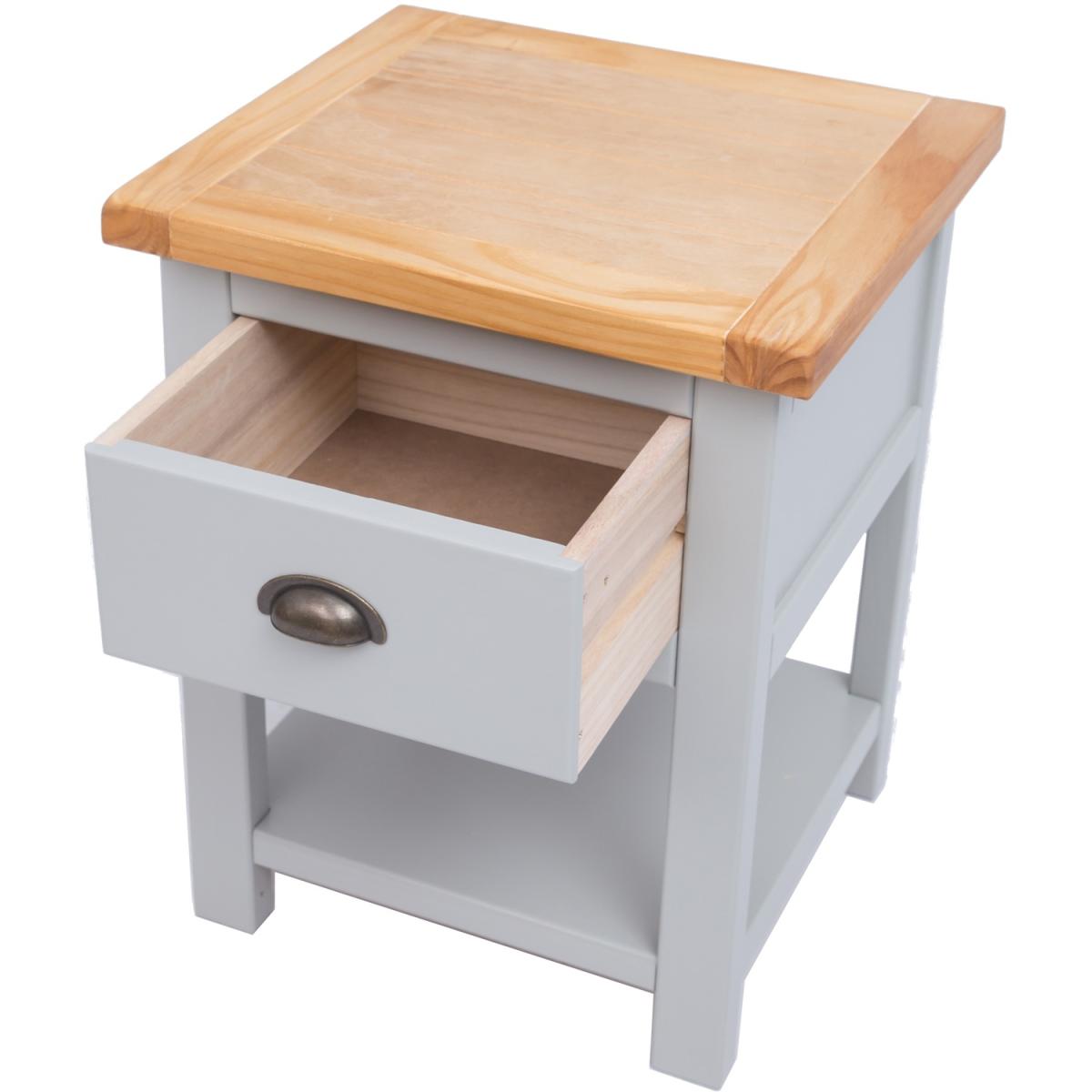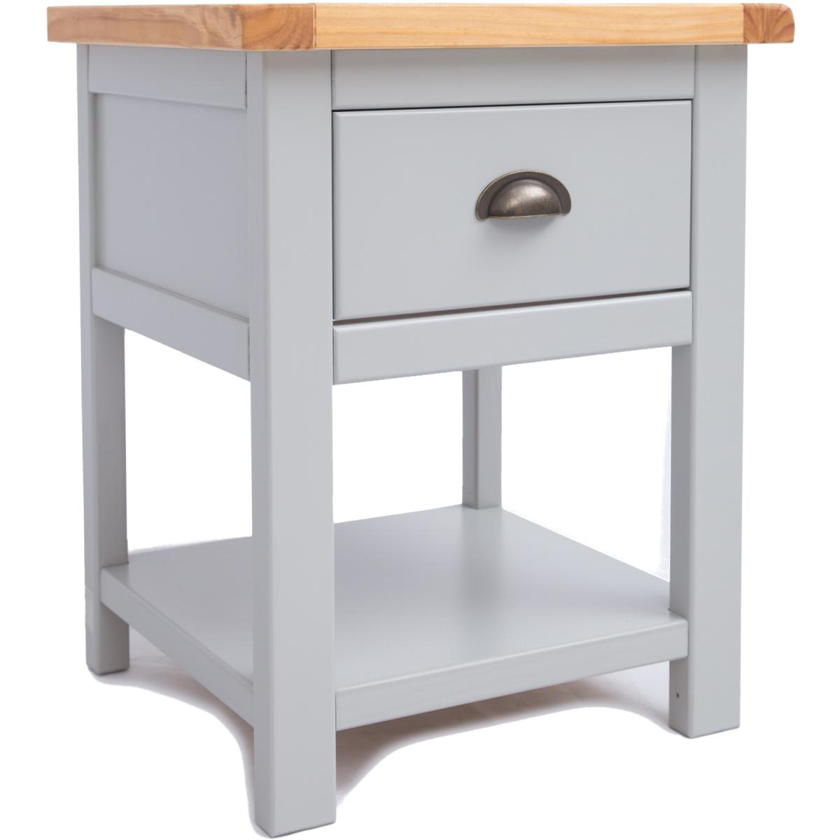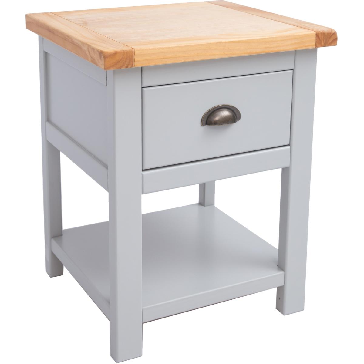 Our Argenta collection has a simple but pleasing design and is produced by our skilled craftsmen to the highest standards using responsibly sourced wood and veneers. All tops are made using a combination of solid pine wood and veneers and are carefully hand-waxed giving them a great look. The body is finished with high-quality eco-friendly water-base paint in a light grey colour. These attributes combined with a simple construction for easy assembly make it a great value product to be taken home today. This one-drawer bedside with a shelf offers you the ideal mix of closed storage and open space to house your favourite reading material or display a favourite moment. Why not choose a pair - one for each side of the bed.