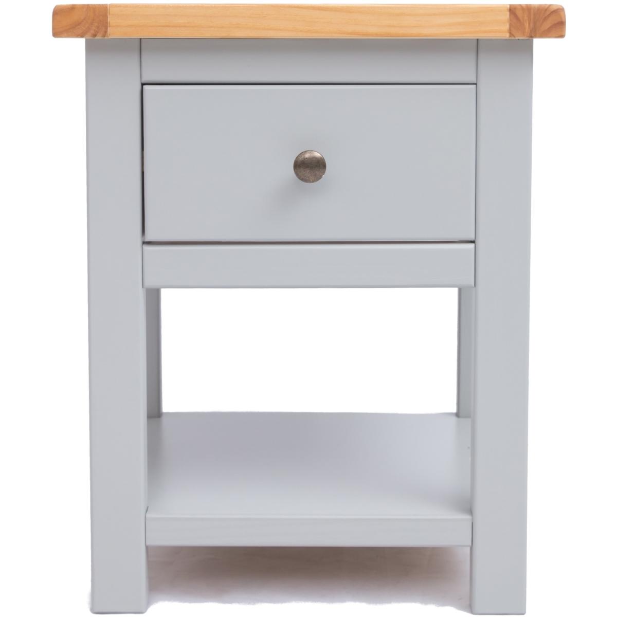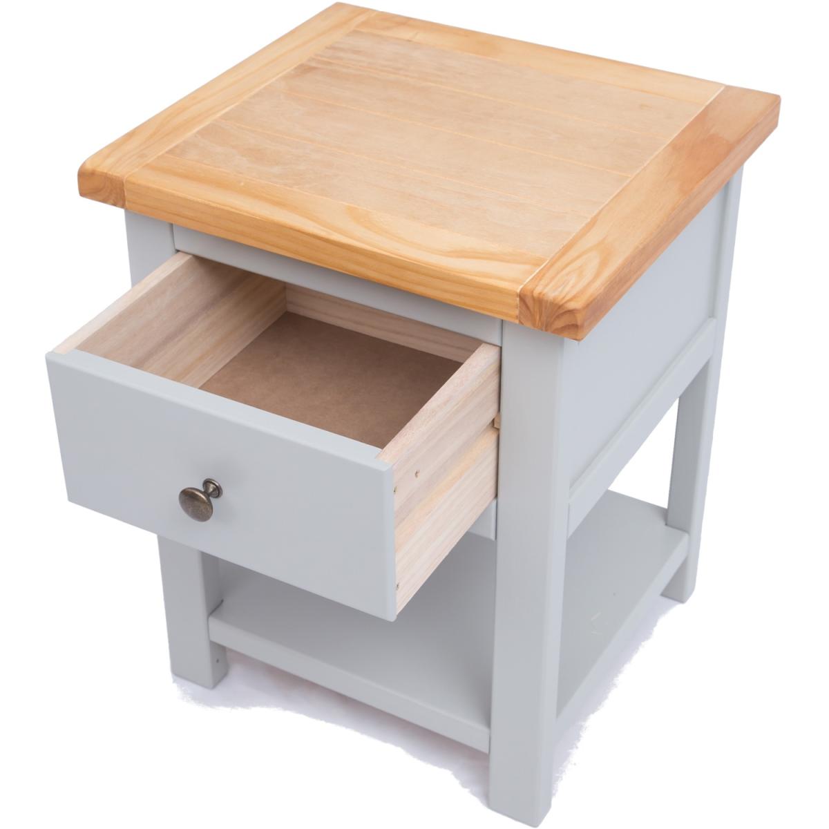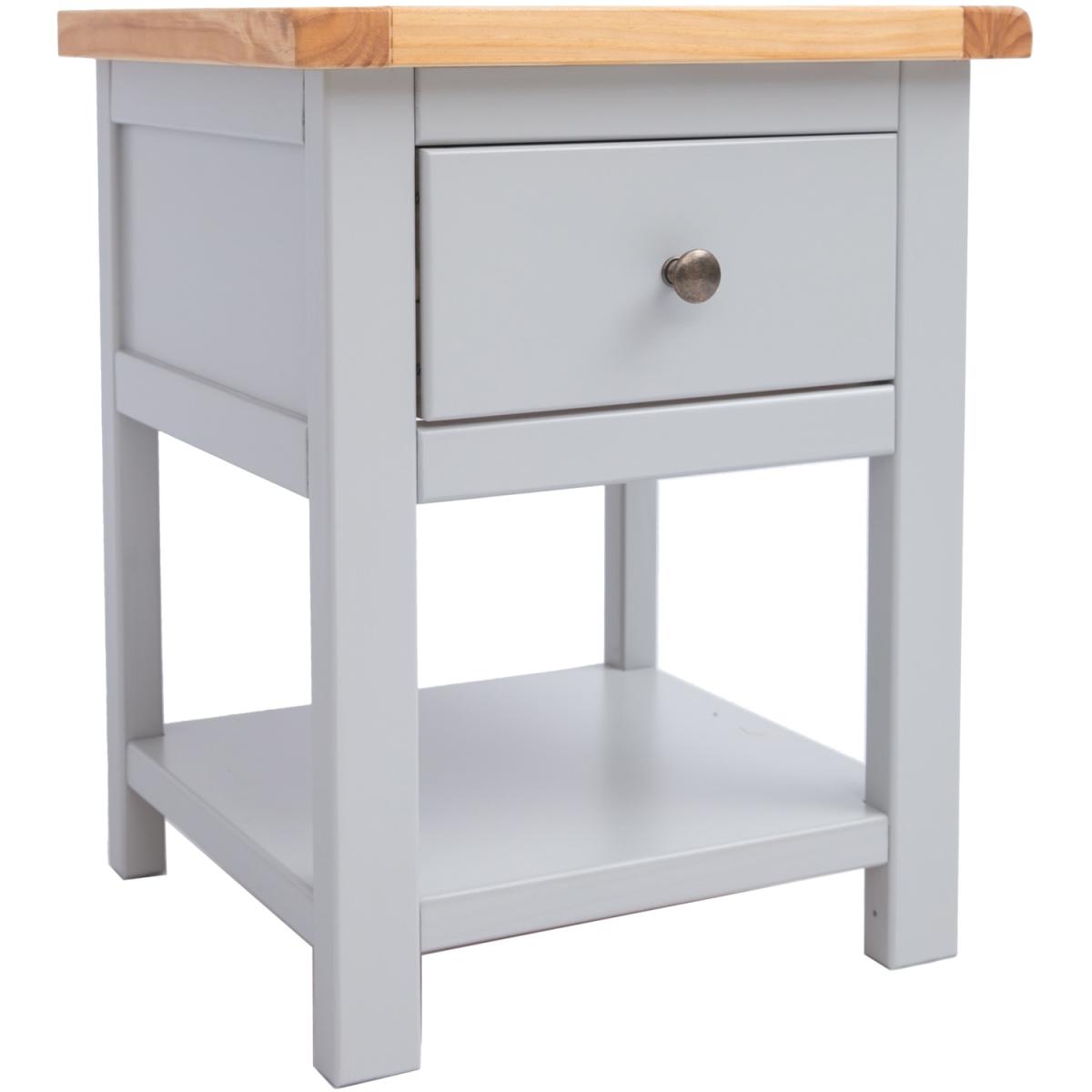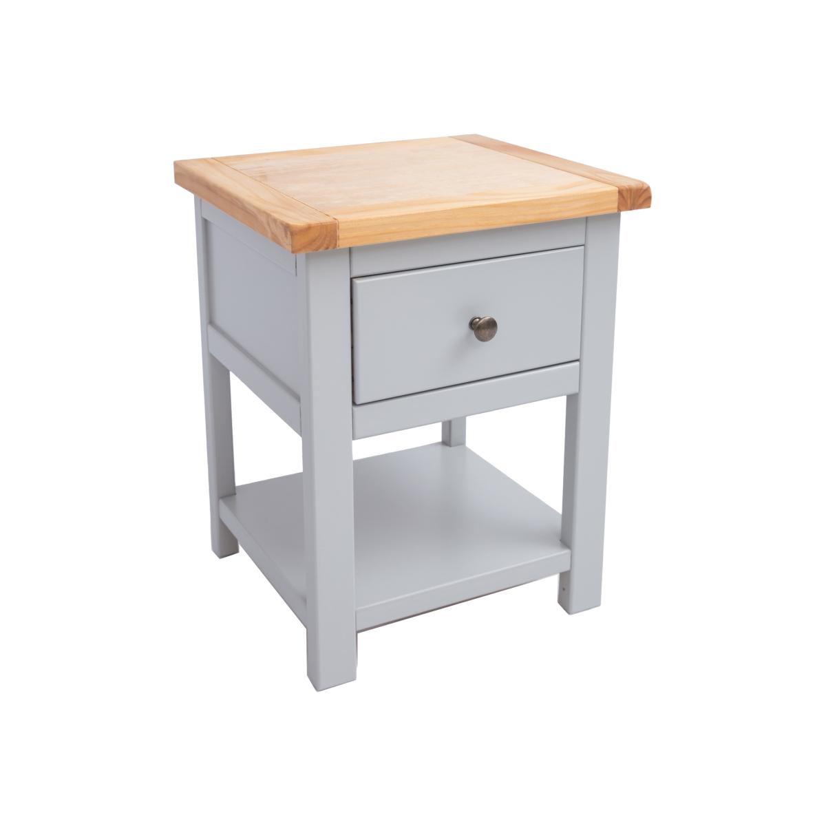 Our Argenta collection has a simple but pleasing design and is produced by our skilled craftsmen to the highest standards using responsibly sourced wood and veneers. All tops are made using a combination of solid pine wood and veneers and are carefully hand-waxed giving them a great look. The body is finished with high-quality eco-friendly water-base paint in a light grey colour. These attributes combined with a simple construction for easy assembly make it a great value product to be taken home today. This one-drawer bedside with a shelf offers you the ideal mix of closed storage and open space to house your favourite reading material or display a favourite moment. Why not choose a pair - one for each side of the bed.