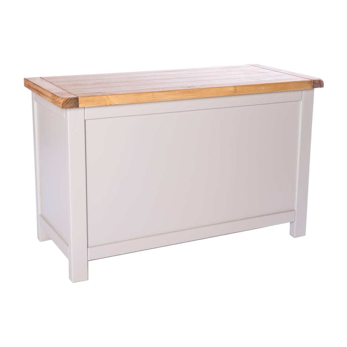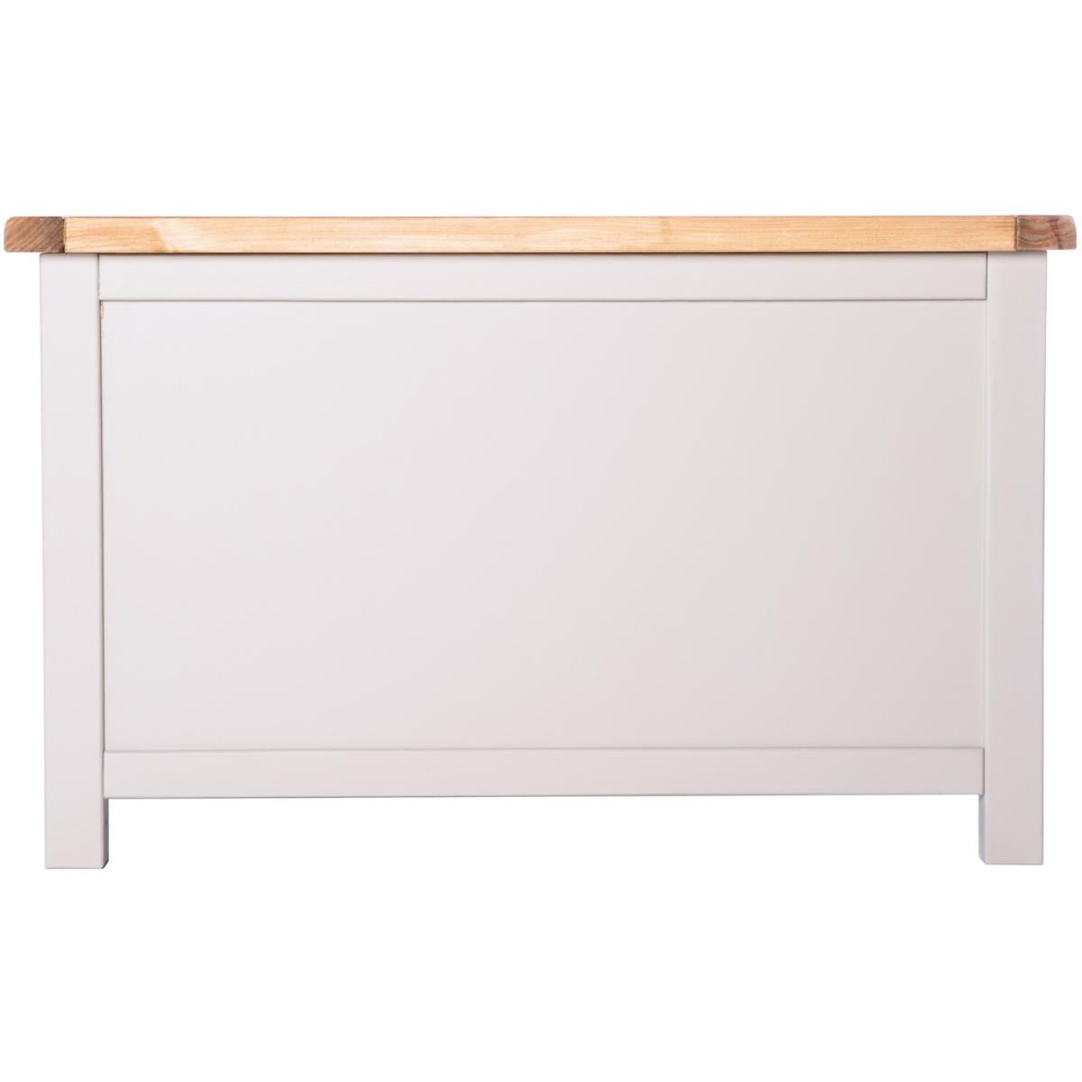 Our Argenta collection has a simple but pleasing design and is produced by our skilled craftsmen to the highest standards using responsibly sourced wood and veneers. All tops are made using a combination of solid pine wood and veneers and are carefully hand waxed giving it a great look. The body is finished with a high quality eco-friendly water base paint in an light grey colour. This ottoman is the perfect item to fit in small areas, but still offers plenty of storage space for all your essentials. It comes with a safety holder to avoid accidents and it is made with a solid wood frame and veneer panels, making it very strong and stable, guaranteeing it will last for a long time. The top has a 3cm thick solid wood frame, making it extremely sturdy. These attributes combined with a simple construction for easy assembly makes it a great value product to be taken home today.