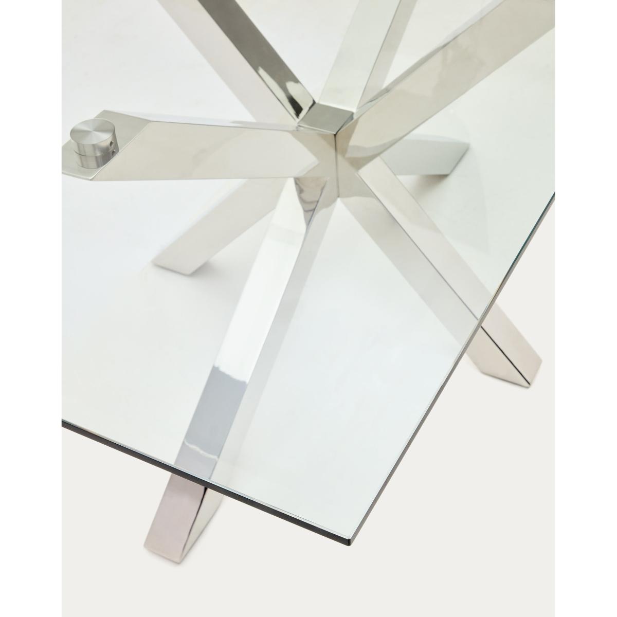 I love this table for its sleek, modern aesthetic and versatility. The glass top gives an airy feel, making it ideal for smaller dining spaces or open-plan kitchens, while the stainless steel legs add a contemporary edge that fits well in both minimalist and industrial interiors. Practical styling tips include pairing it with statement chairs in bold colours or textured fabrics to add interest, or keeping the whole look understated with neutral tones for a sophisticated feel. It also works well with both casual and more formal settings, depending on your choice of accessories and tableware, making it a flexible focal point for a range of interior styles.