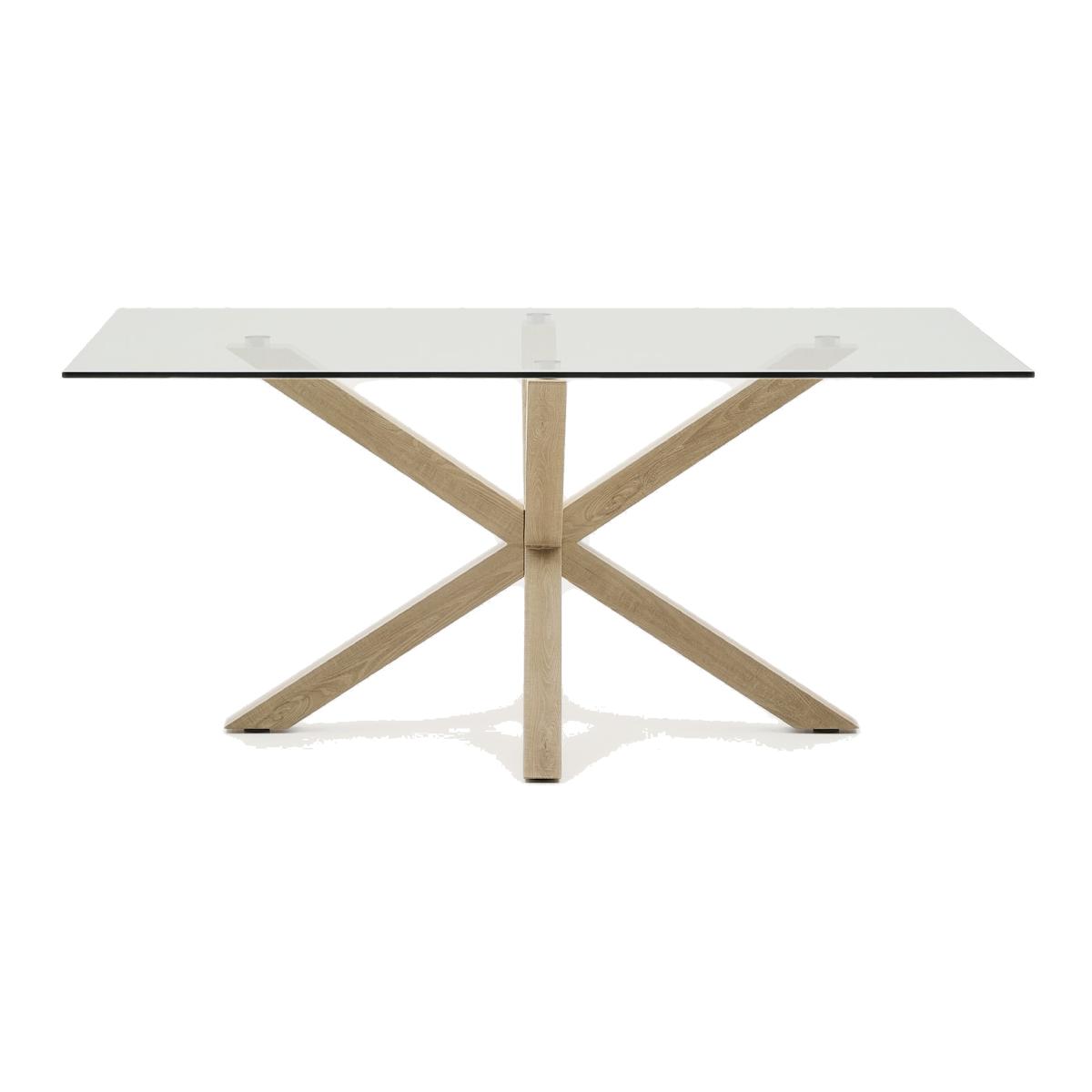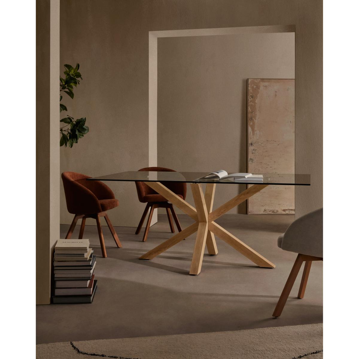 I love the idea of this glass and wood-effect table for its versatile style and modern feel. The glass top adds a sleek, contemporary touch, while the wood-effect finish on the steel legs brings warmth and texture, making it adaptable to both minimalist and more cosy interiors. It's particularly well-suited for open-plan or modern dining spaces, and it works brilliantly when styled with a mixture of chairs-think understated fabric or leather pieces for a relaxed vibe, or even statement chairs for a touch of personality. To keep it looking fresh, avoid clutter and opt for simple tableware, with a pretty centrepiece or some fresh flowers to add a pop of colour. This table is a practical choice that pairs well with many interior styles, making it a flexible addition to any dining area.