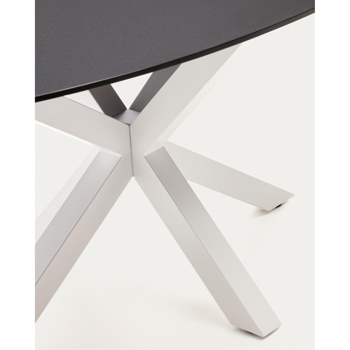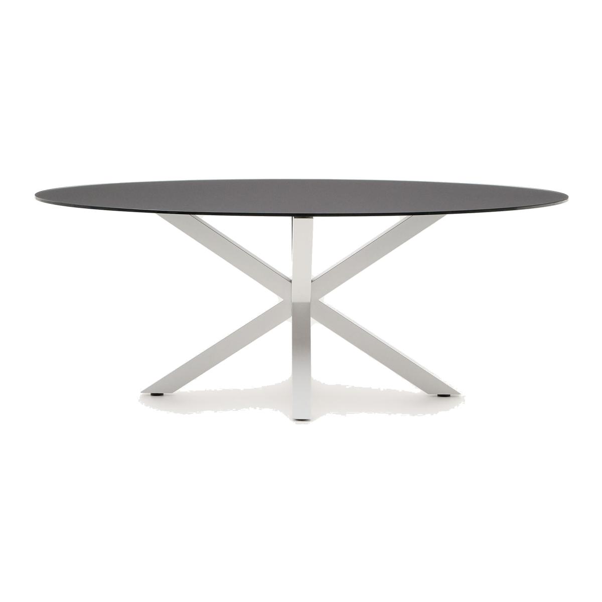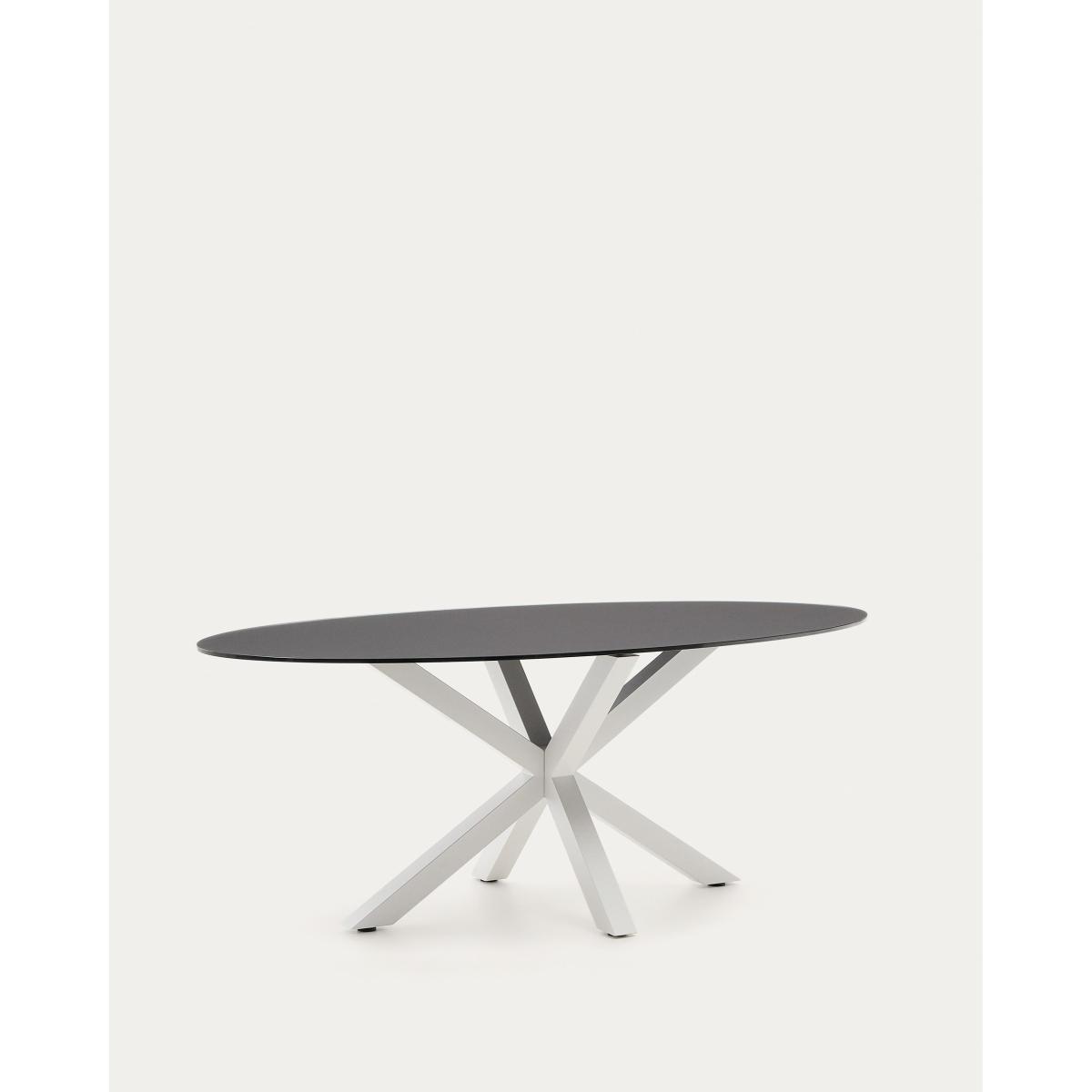 Argo oval table in matt black glass and steel legs with white finish Ø 200 x 100 cm