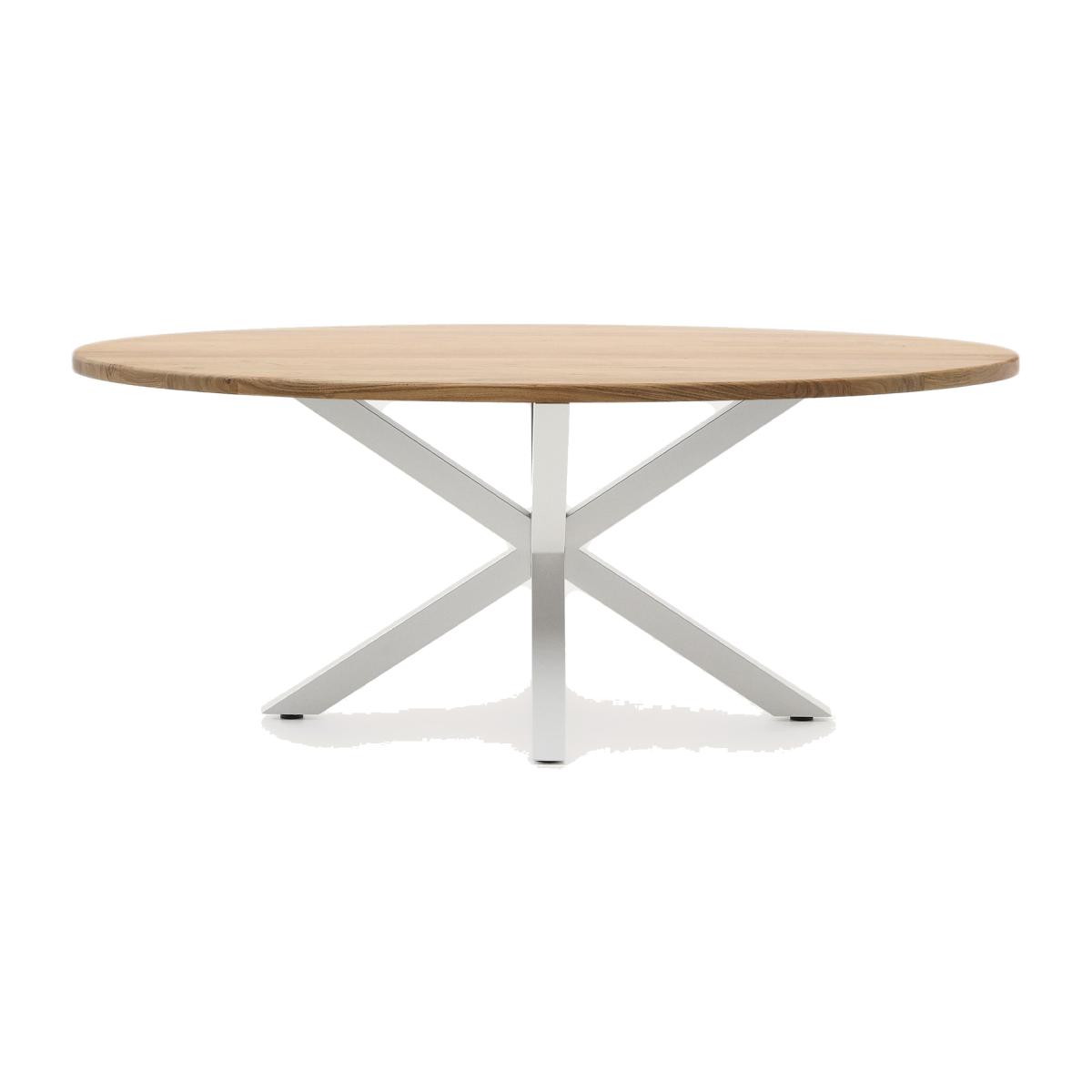 Argo oval table in solid acacia wood and steel legs with white finish Ø 200 x 100 cm