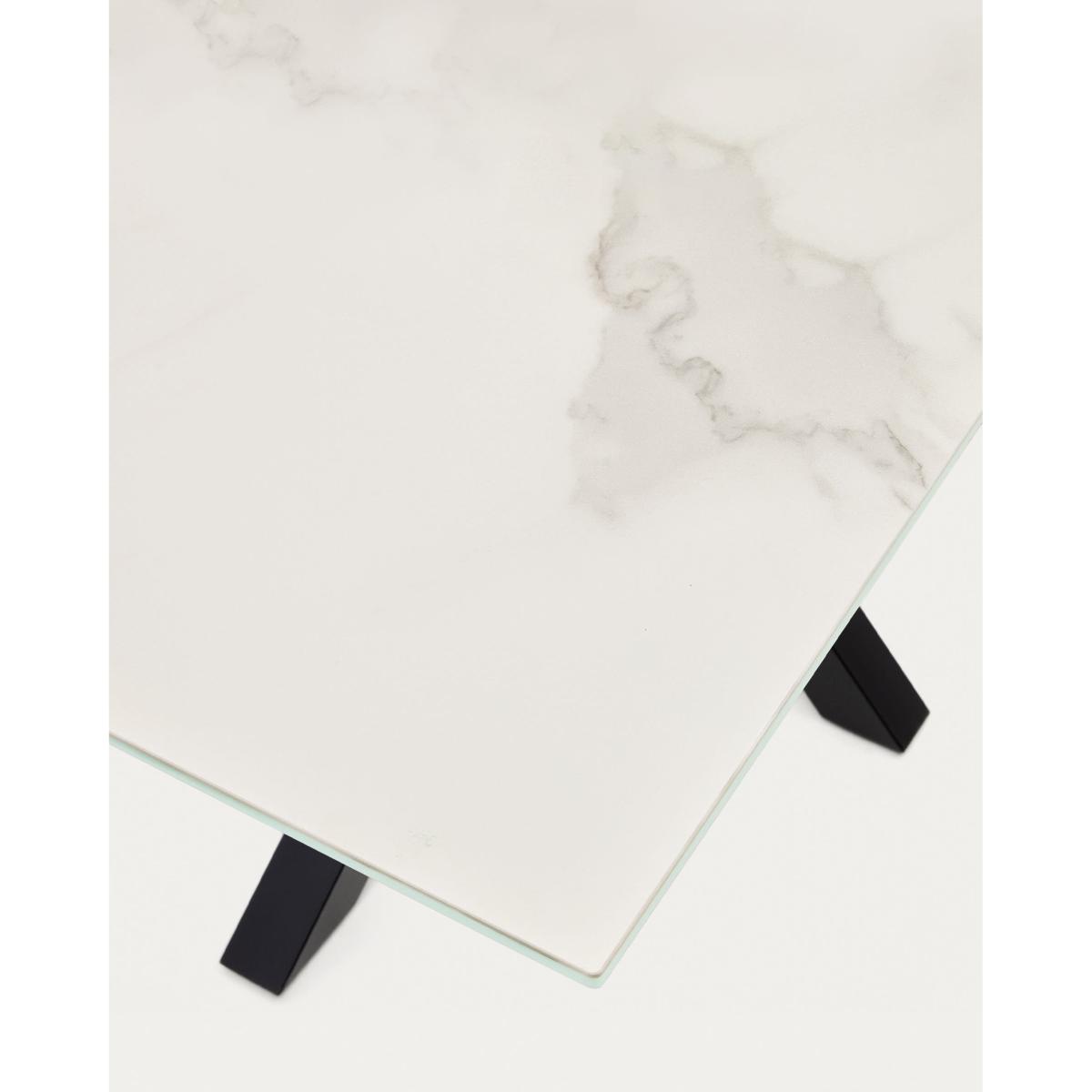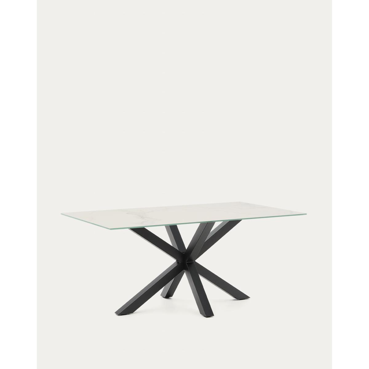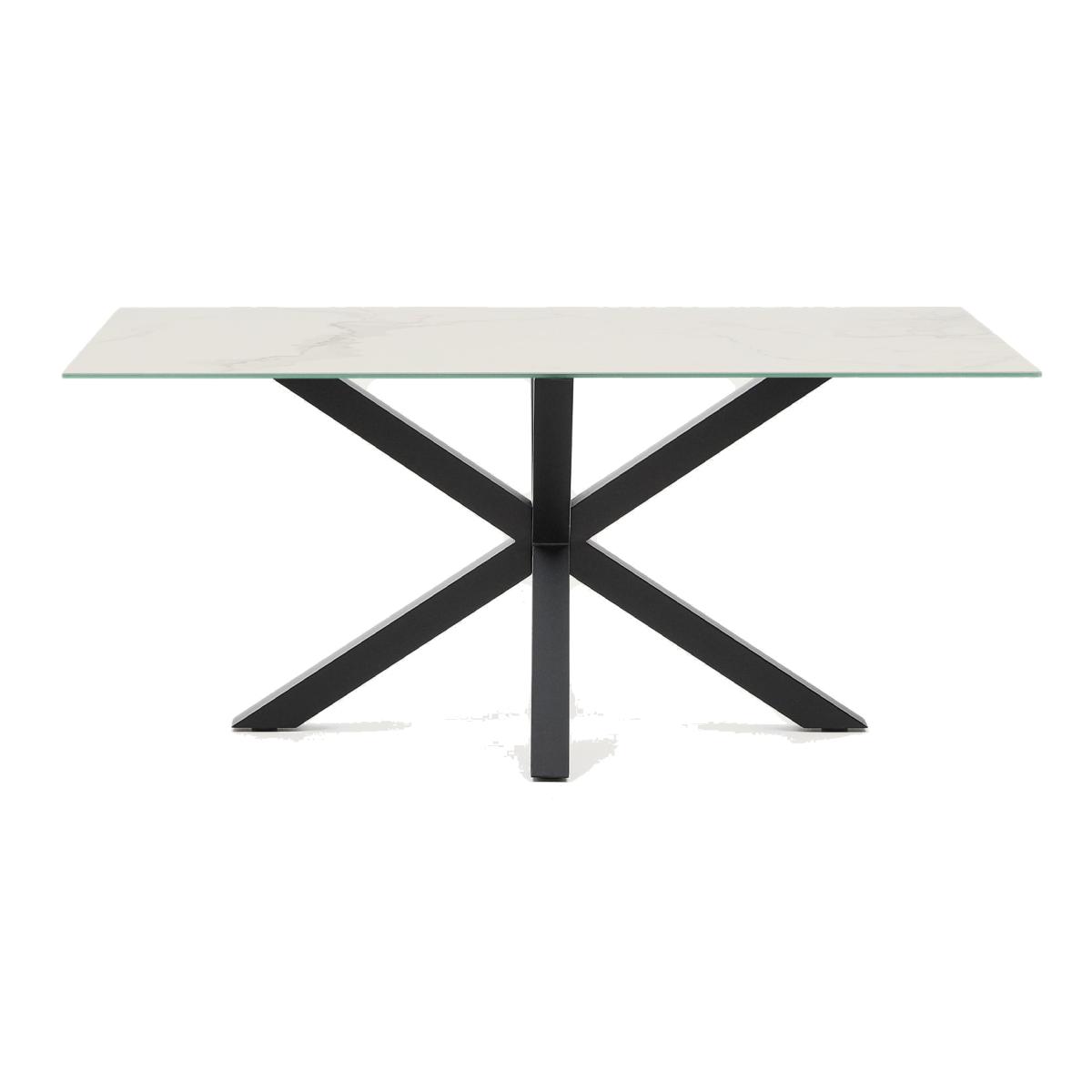 The Argo table offers a sleek, modern aesthetic that works particularly well in contemporary or minimalist interiors. Its black base combined with the white porcelain top creates a striking contrast, making it an eye-catching yet versatile piece. I love how it can anchor a dining room with a monochrome palette or complement bold, colourful accents. To style it effectively, consider pairing with streamlined chairs in materials like metal or leather for a chic look, and add textured textiles or greenery to soften the overall effect. Practical tips include keeping the surface clear for a clean finish or adding layered centrepieces for a more inviting feel-this table is both functional and stylish for everyday use or special occasions.