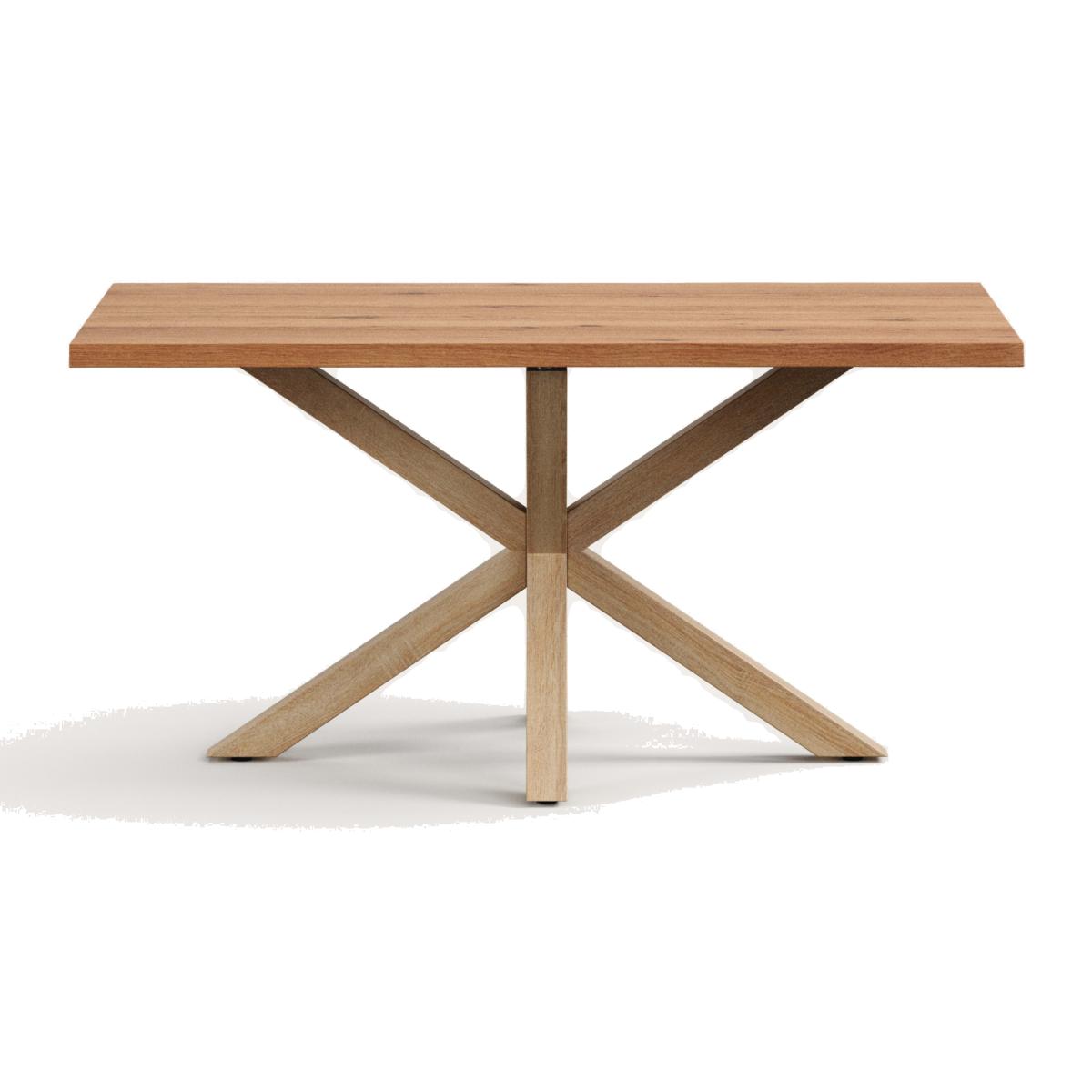 I love this table for its versatile and practical design, making it a great choice for both modern and more rustic interiors. The aged oak veneer adds warmth and texture, while the wood-effect steel legs give it a contemporary edge without feeling too cold or industrial. It works particularly well in open-plan kitchens or dining rooms with a neutral palette, as it can be dressed up with colourful or patterned chairs to add personality. Practical styling tips include pairing it with simple, streamlined chairs for a minimal look, or mixing materials like leather or woven seats to create a more layered, inviting space. Its size makes it ideal for daily family use or intimate dinner parties, and it’s sturdy enough to withstand regular use while maintaining a balance between function and style.
