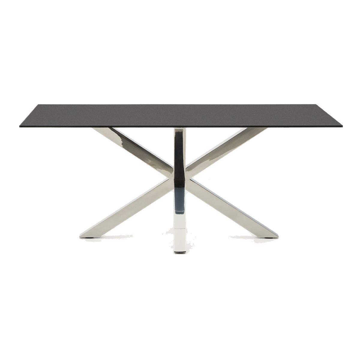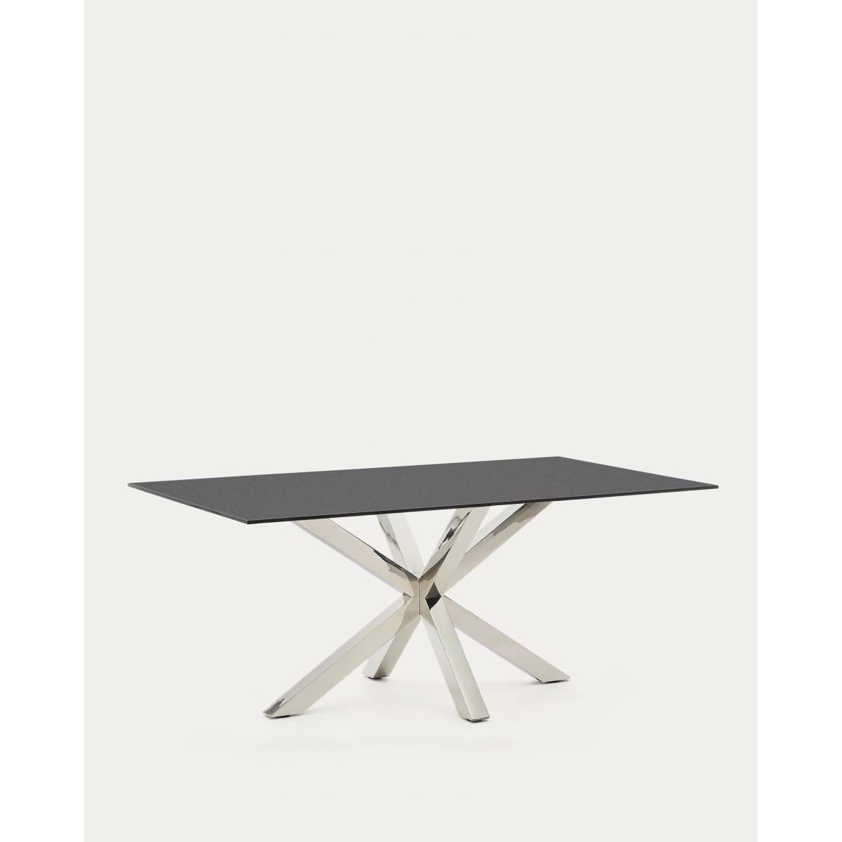 Argo table in frosted black glass and stainless steel legs 180 x 100 cm