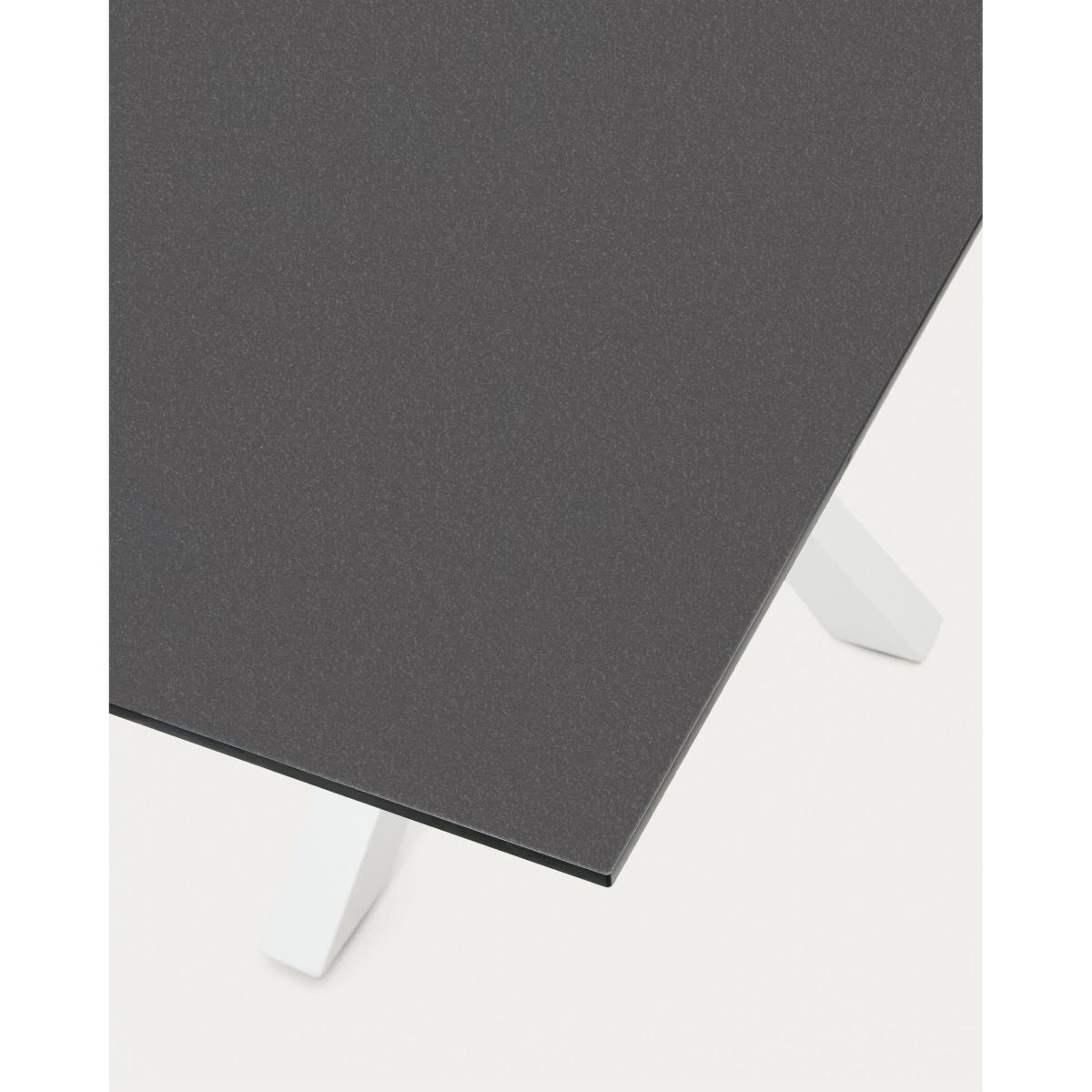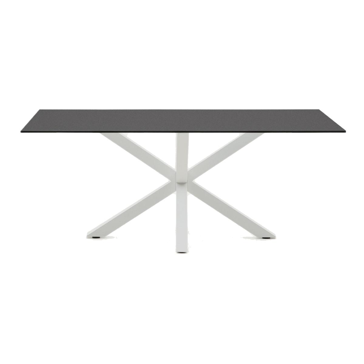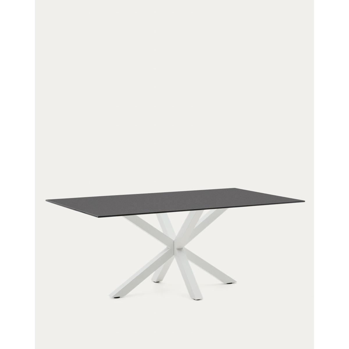 Argo table in frosted black glass and steel legs with black finish 200 x 100 cm