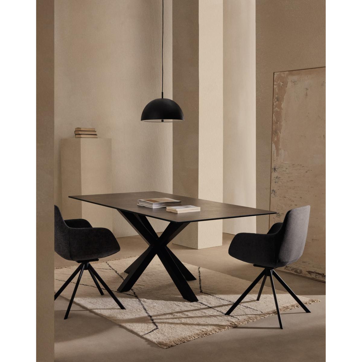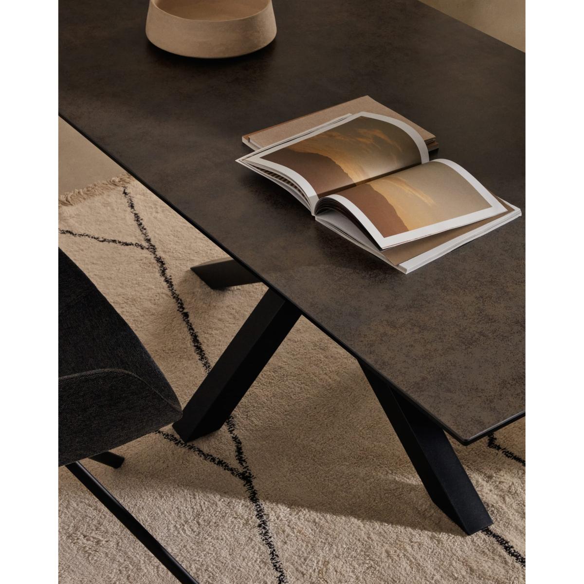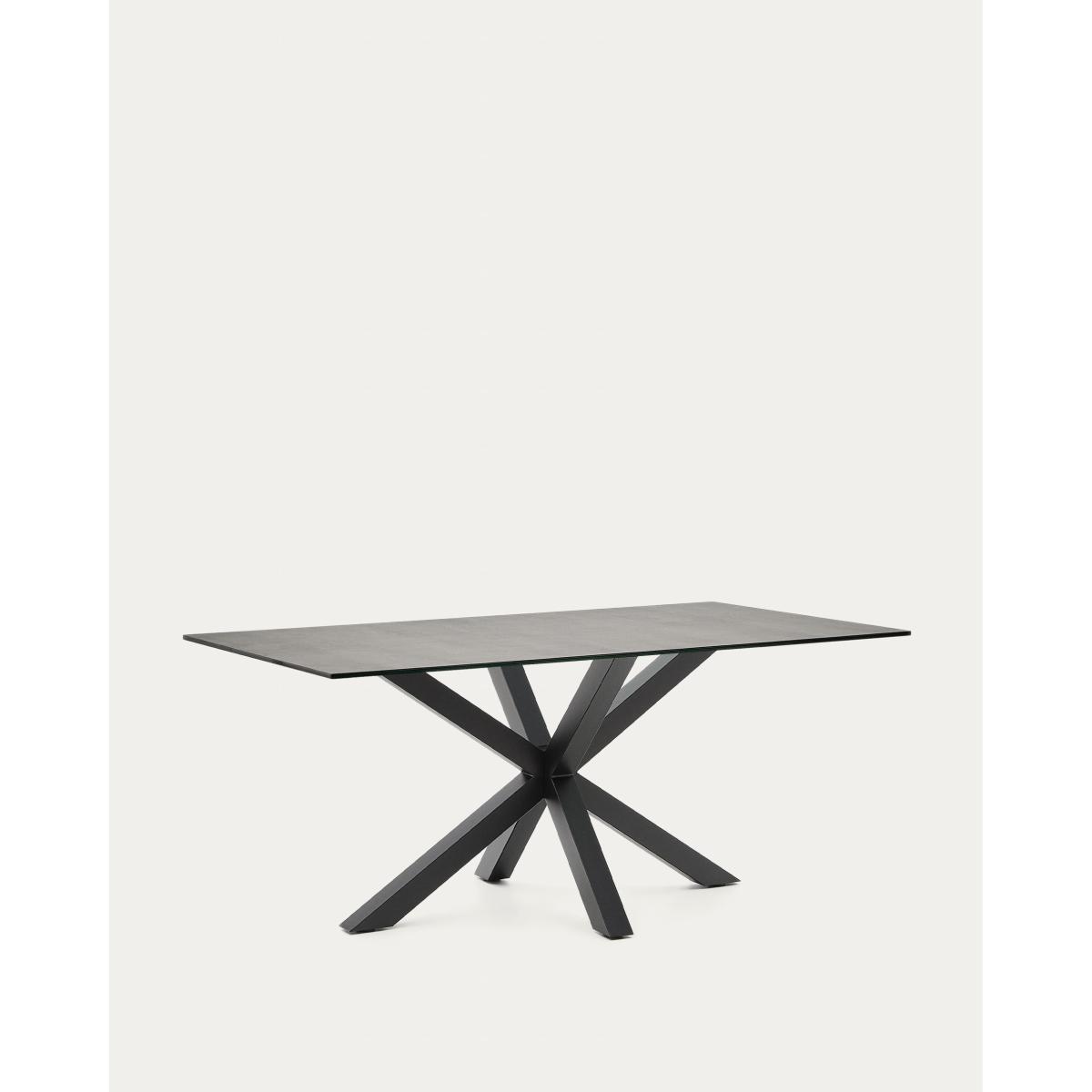 Argo table in Iron Moss porcelain and steel legs with black finish, 160 x 90 cm