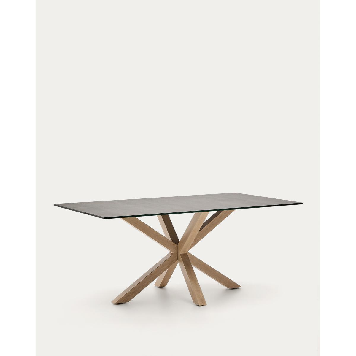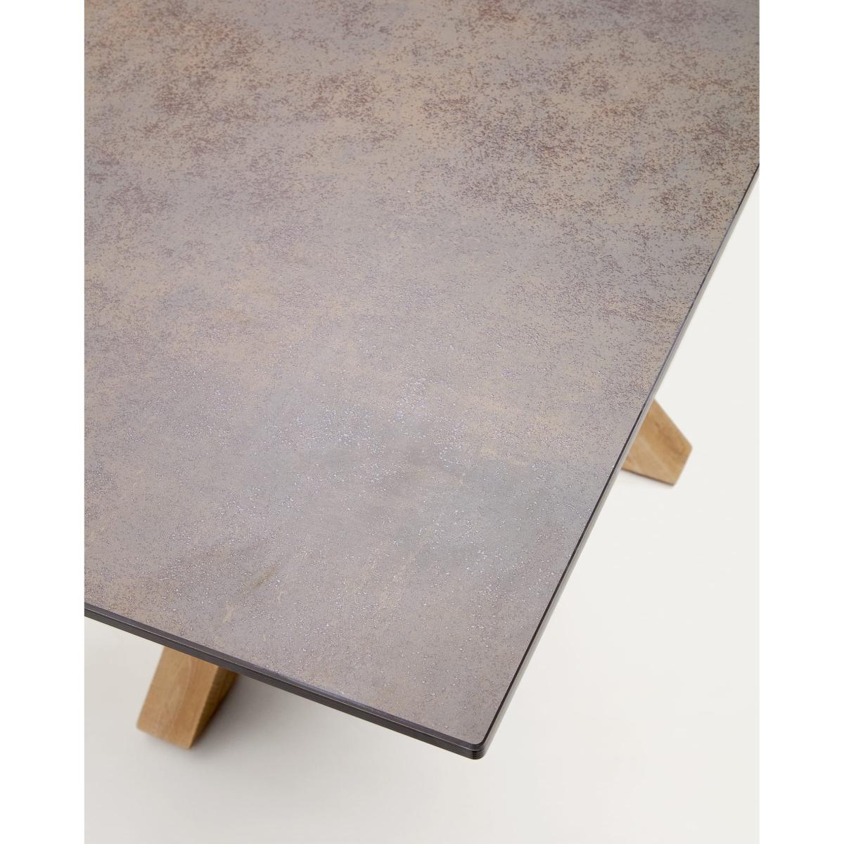 I really like this table because it combines a contemporary feel with sturdy, practical materials. The iron moss porcelain top adds a subtle textured look that works well in both modern and rustic interiors, while the wood-effect steel legs provide a warm contrast, making it versatile for various colour schemes. It's ideal for larger dining spaces, and its clean lines lend itself well to minimalist and Scandinavian settings. For styling, I’d recommend pairing it with understated chairs in natural or muted tones to keep the focus on the table’s striking design. Additionally, layering with simple textiles, such as a neutral runner or placemats, can soften the overall look and create a welcoming dining experience.