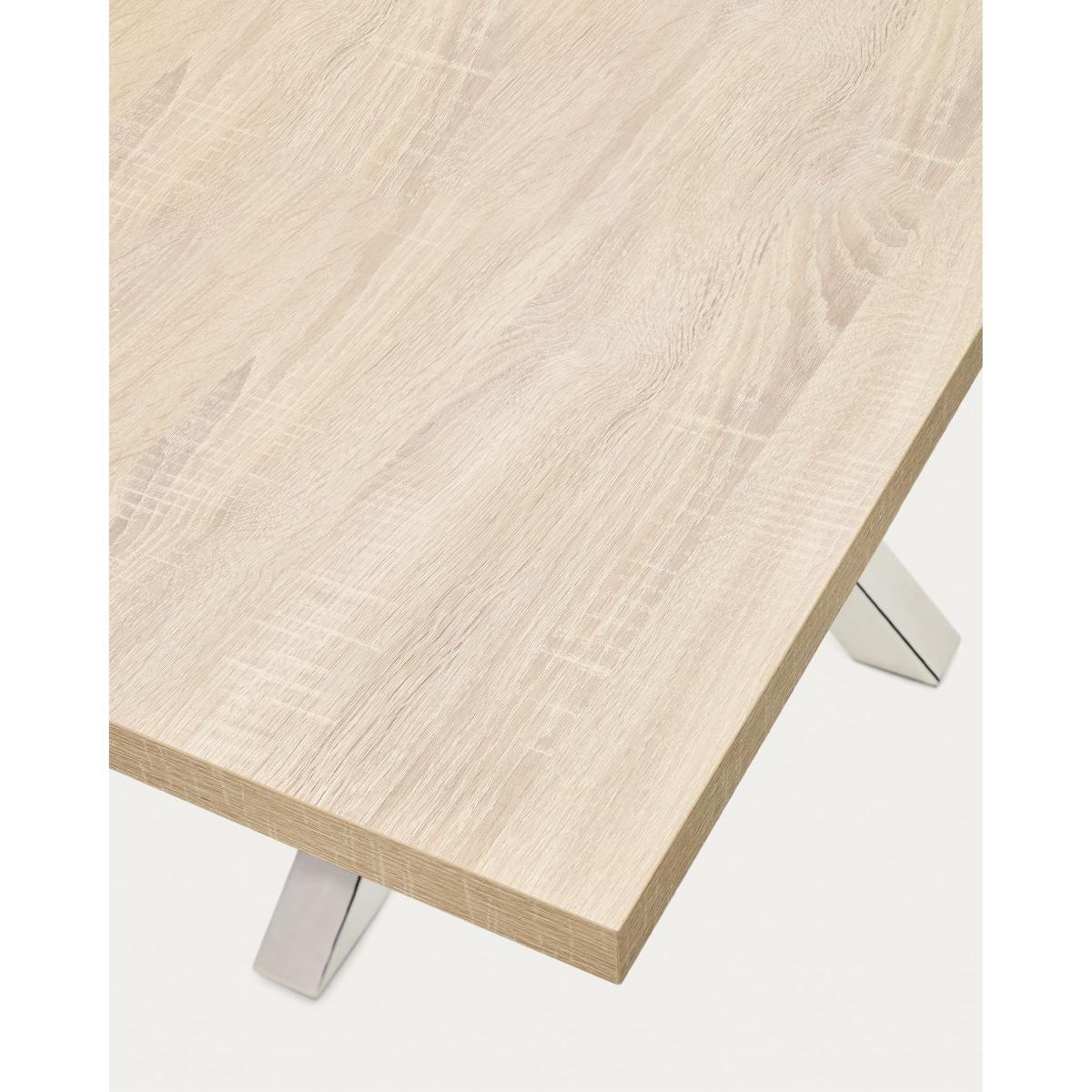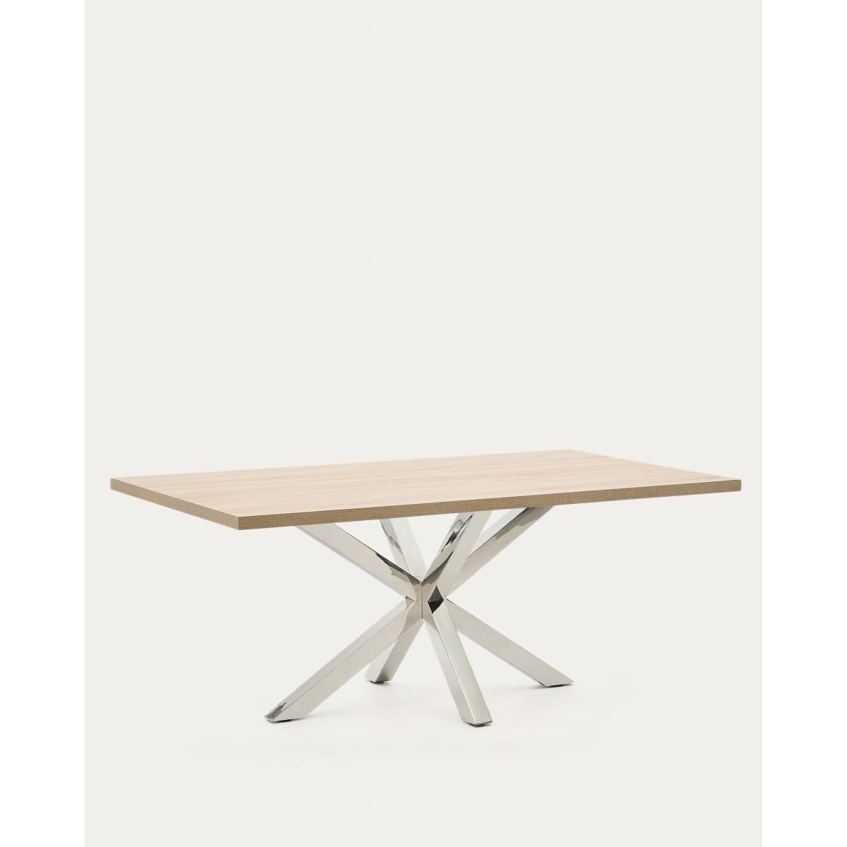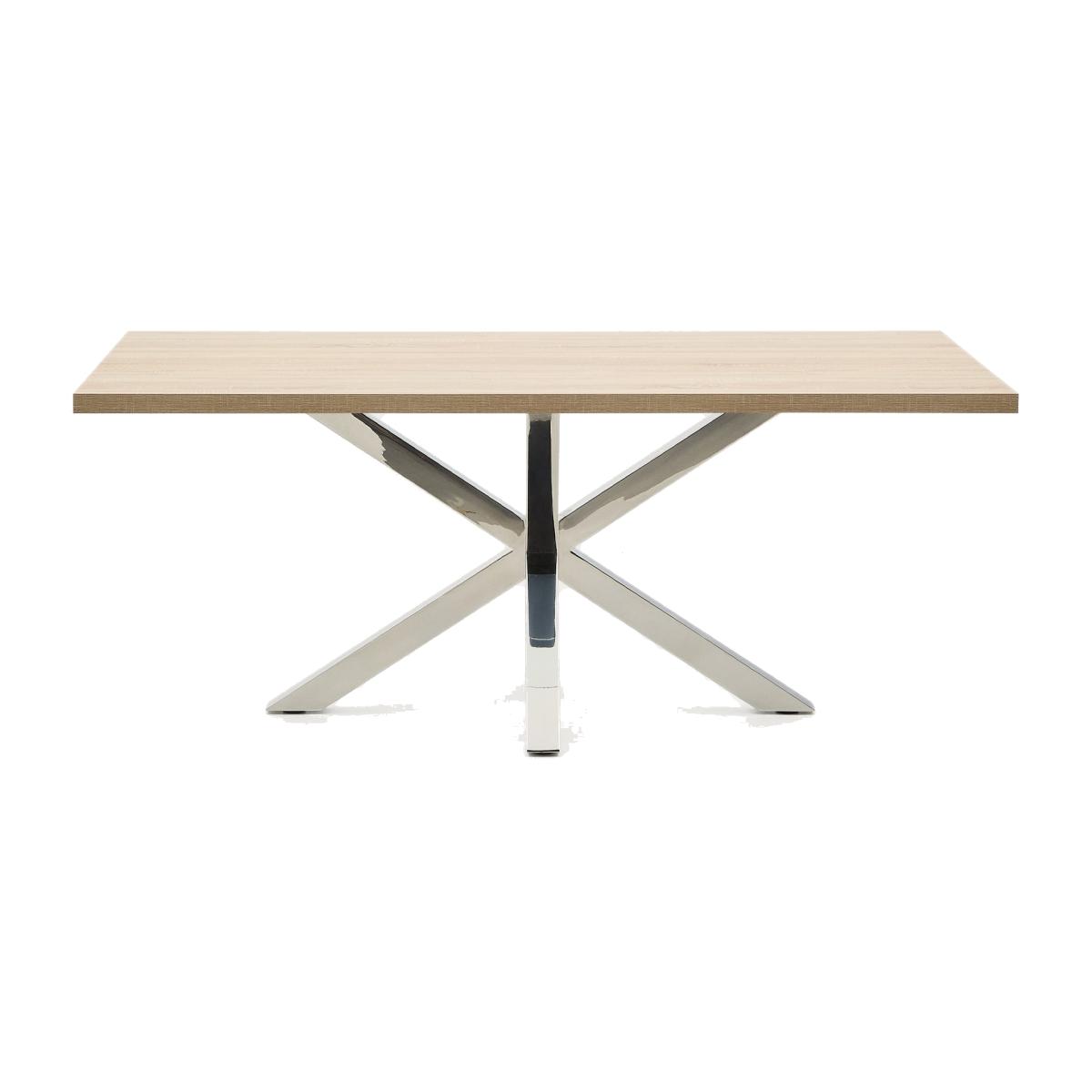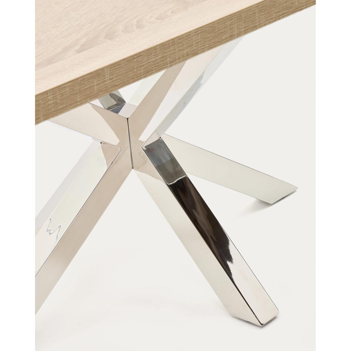 I love this table for its clean, contemporary look that works well in various interior styles, from modern minimal to Scandinavian-inspired spaces. The melamine top offers durability and easy maintenance, making it practical for everyday family use or hosting dinner parties. The natural finish brings a touch of warmth, balancing the sleek stainless steel legs for a subtle contrast. When styling around it, consider pairing with upholstered chairs for comfort or sleek metal options for a more cohesive, modern vibe. To keep the look fresh, accessorise with understated tableware and natural centrepieces like greenery or wooden elements. It's a versatile piece that combines style with practicality, adaptable to both casual and more polished dining zones.