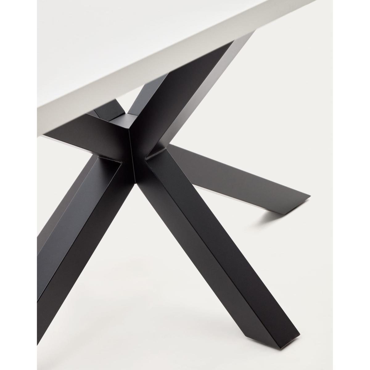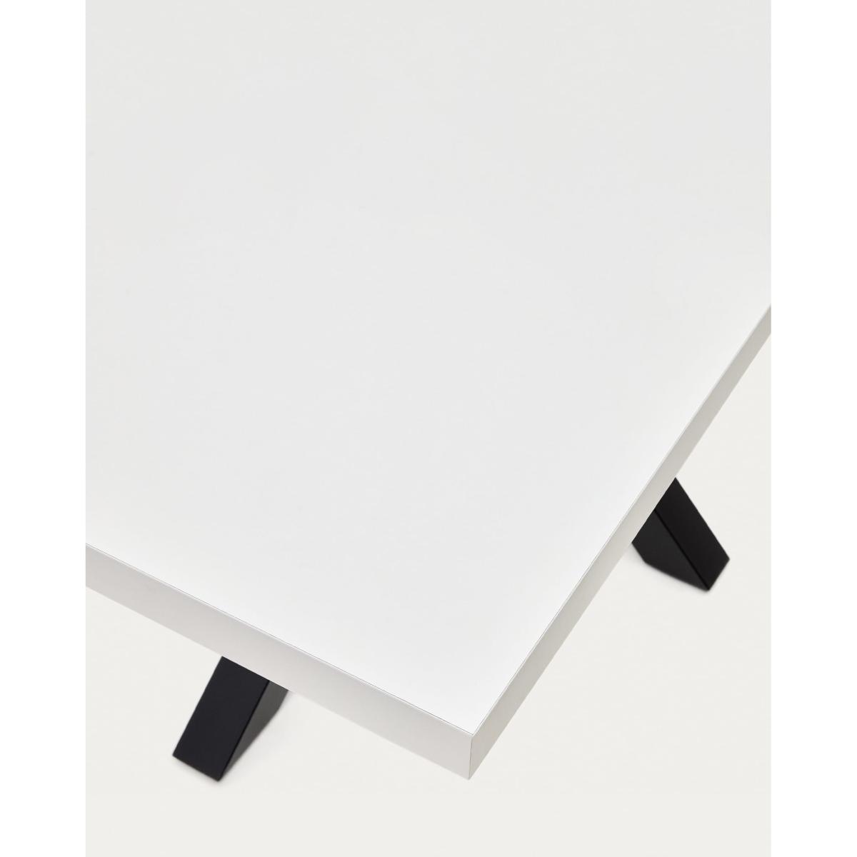 I really like this dining table for its clean, modern aesthetic. The white melamine top combined with the black steel legs offers a sleek, versatile look that works well in contemporary, minimalist, or industrial interiors. Its size (160 x 100cm) makes it suitable for medium-sized dining spaces or open-plan kitchens, offering practicality without overwhelming the room. Styling tips would include keeping surfaces clutter-free and adding a statement centrepiece or patterned placemats to soften the overall look. Pairing it with mixed materials, such as wooden chairs or textured textiles, can add warmth and personality to a space while maintaining its modern edge. Overall, a reliable piece that combines functionality with stylish simplicity.
