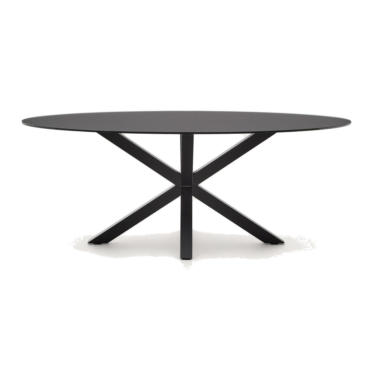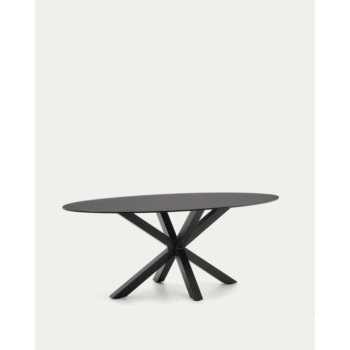 Argo table with black glass and black steel legs Ø 200 x 100 cm