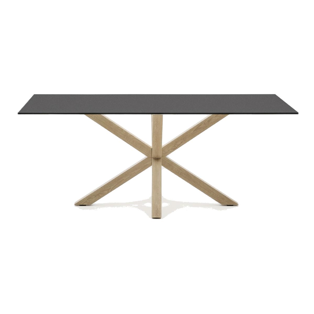 Argo Table with Black Glass and Steel Legs with Wood Finish 200 x 100 cm
