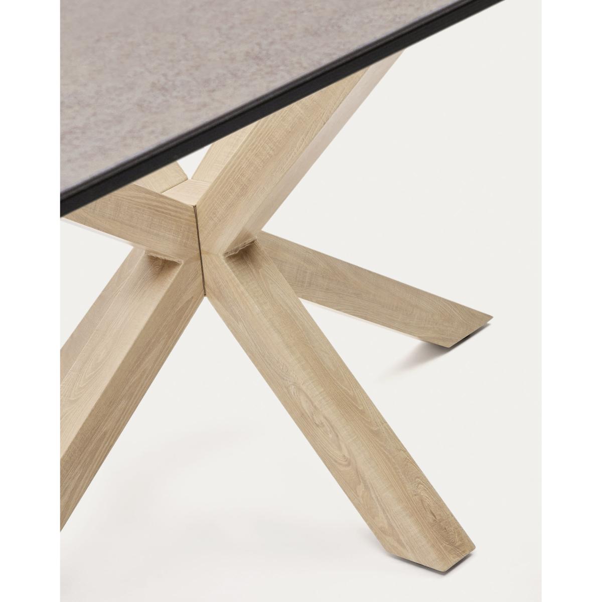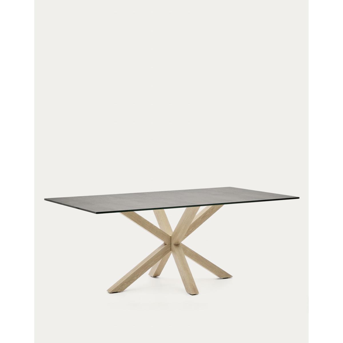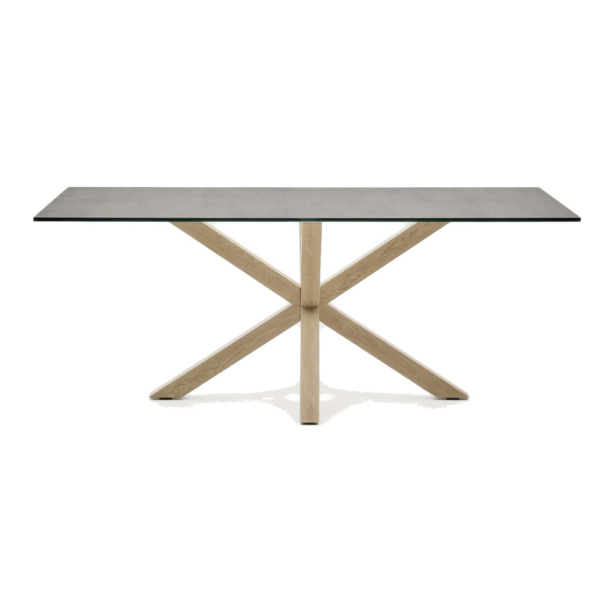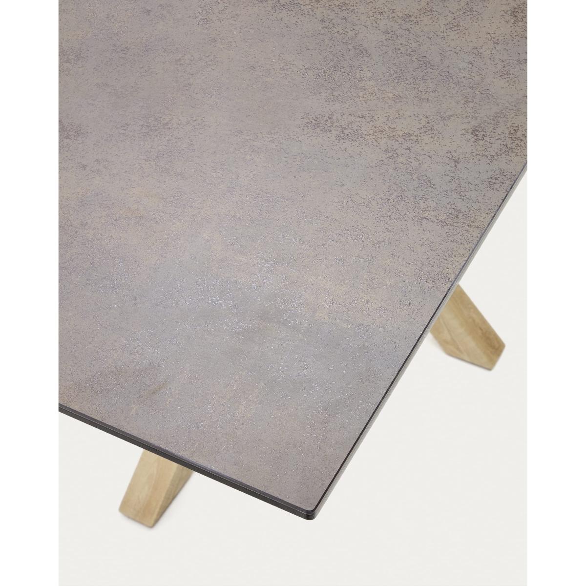 I love this table for its sleek, modern look and versatility. The high-tech porcelain top is both durable and easy to maintain, making it ideal for everyday use and entertaining alike. Its pared-back design with the natural wooden base lends itself well to contemporary interiors, particularly those with minimalist, Scandinavian, or urban styles. Practical styling tips include layering with simple, neutral-coloured tableware to highlight the textured surface, or pairing it with statement chairs in contrasting tones or materials for visual interest. This table works equally well in a bright open-plan space or a more subdued, cosy dining nook, making it a genuinely adaptable piece for a variety of interiors.
