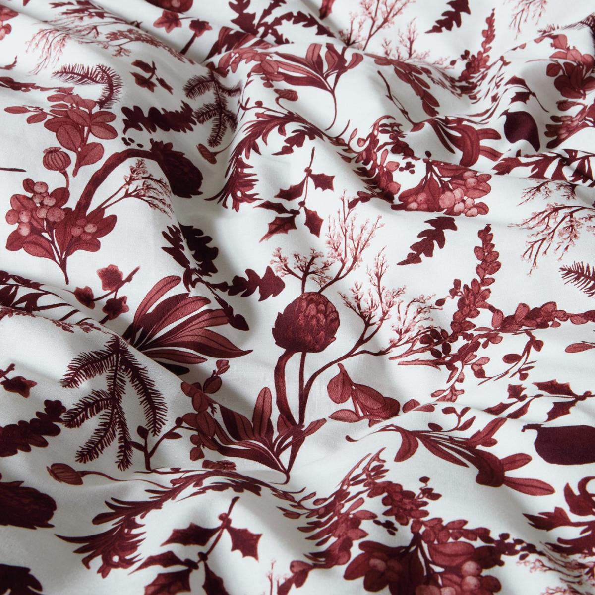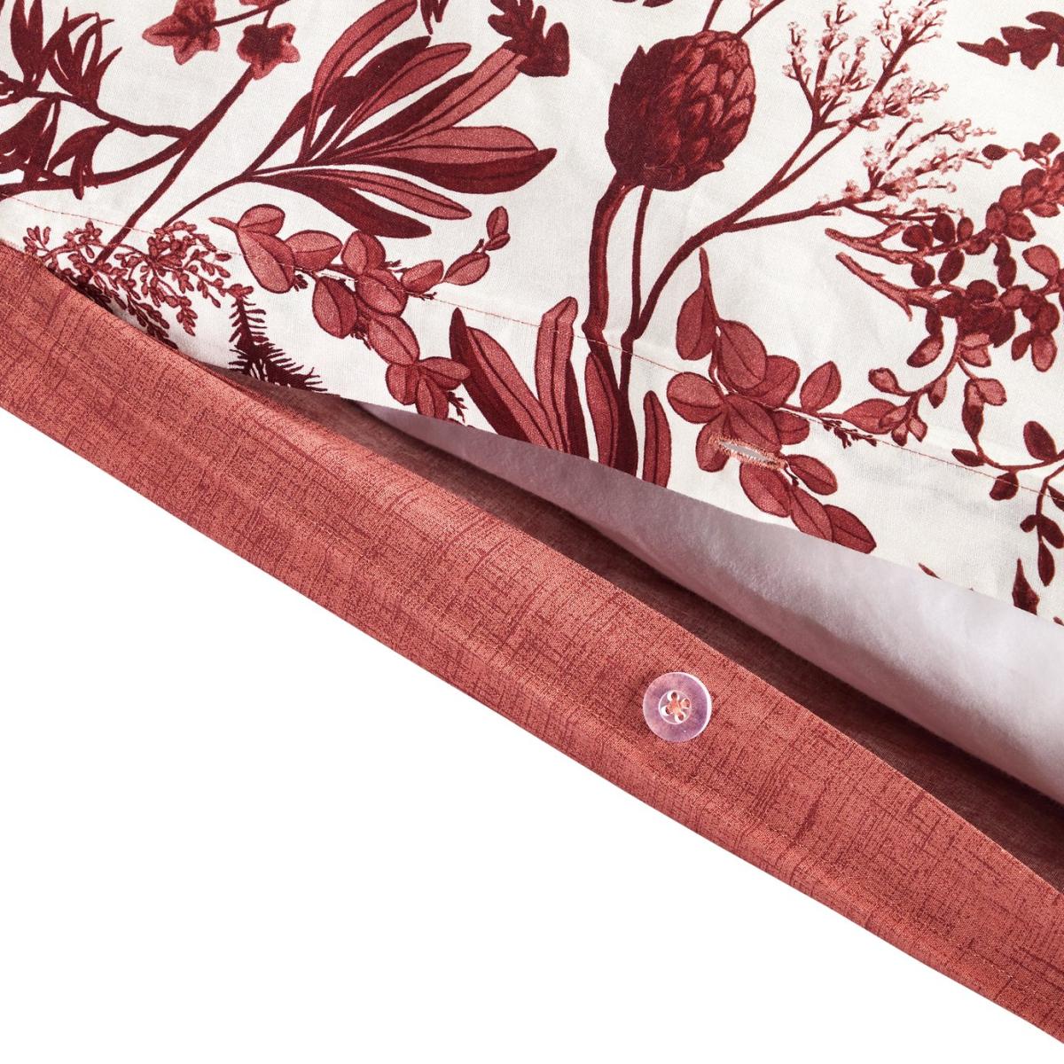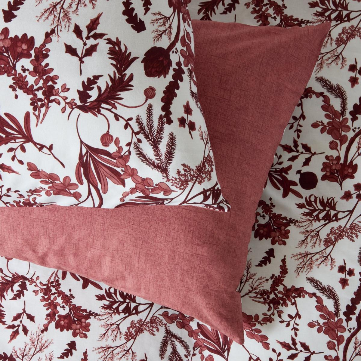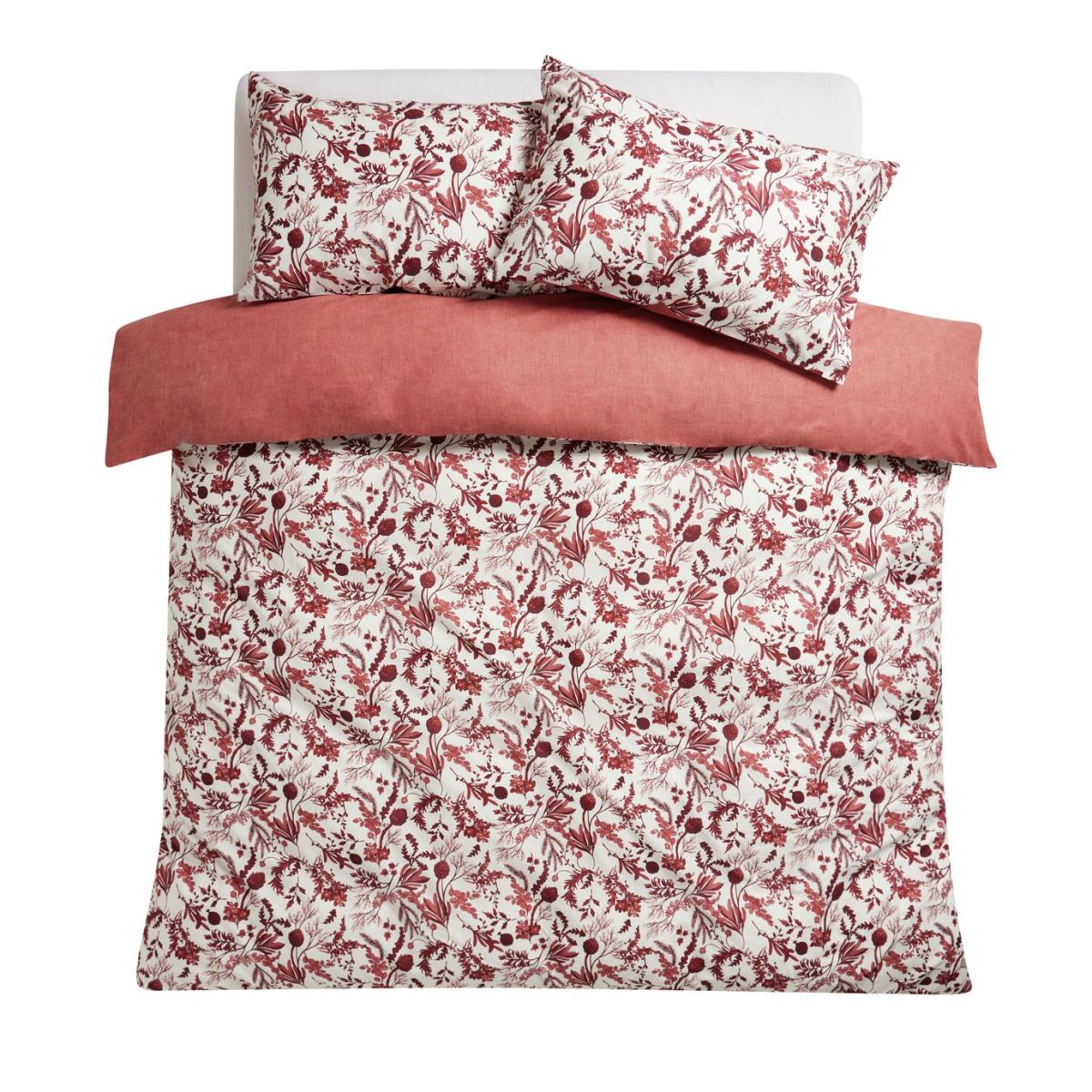 Dress your bed in the rich hues of autumn with this burgundy foliage superking bedding set. Featuring a wild leafy print in deep reds and warm ambers on one side and plain burnt orange on the other. Two looks in one, just flip to refresh. Made from soft, breathable polycotton, it's comfy to snuggle into and easy to keep fresh. A little place of peace after a busy day. Fabric finish: printed. 50% recycled polyester, 50% cotton. 144 thread count. Set includes 1 duvet cover and 2 pillowcases. Bed size: super king. Length 220cm, Width 260cm. Buttons for fastening. Standard pillowcase (s). Pillowcase length 75cm, Width 50cm. Machine washable. Suitable for tumble drying.