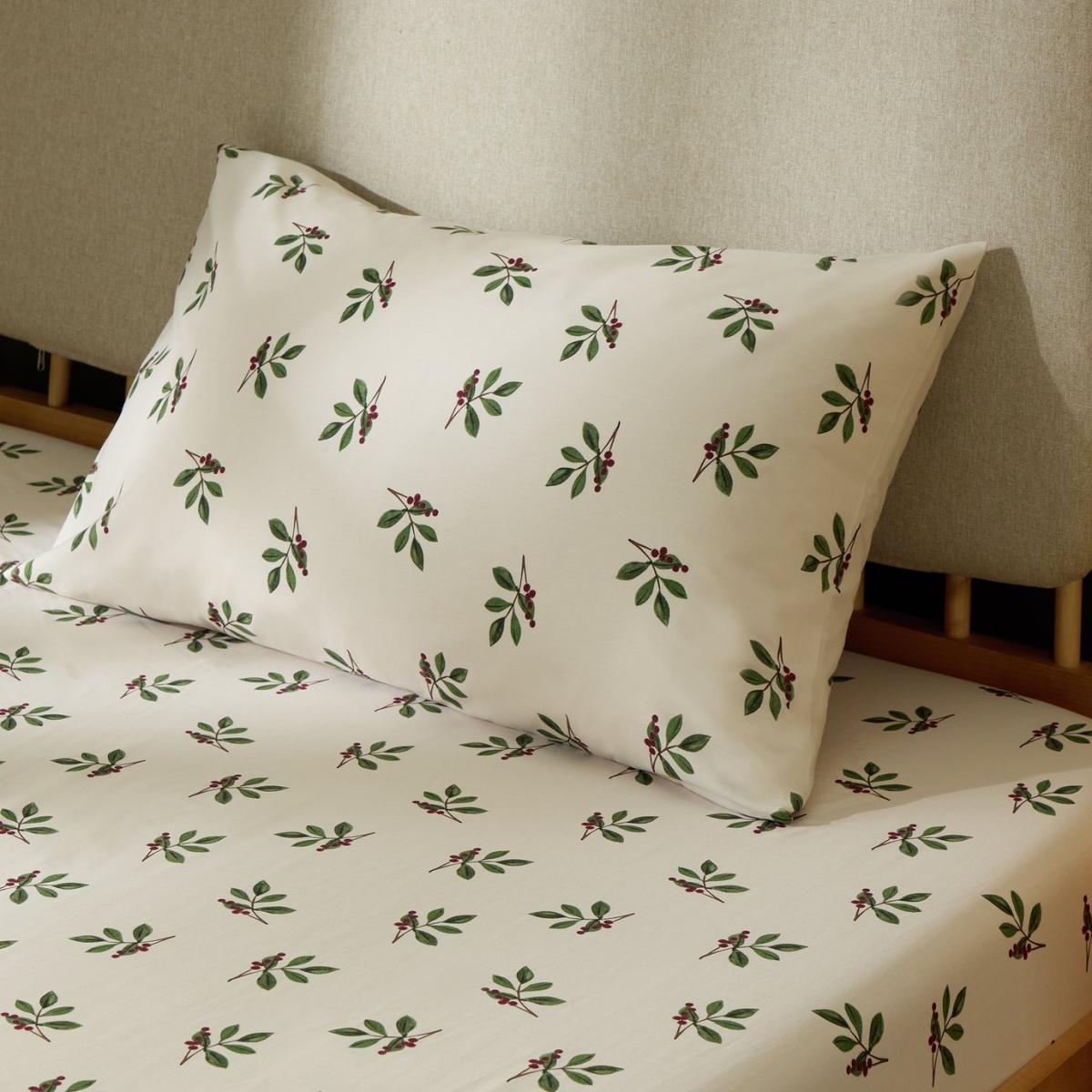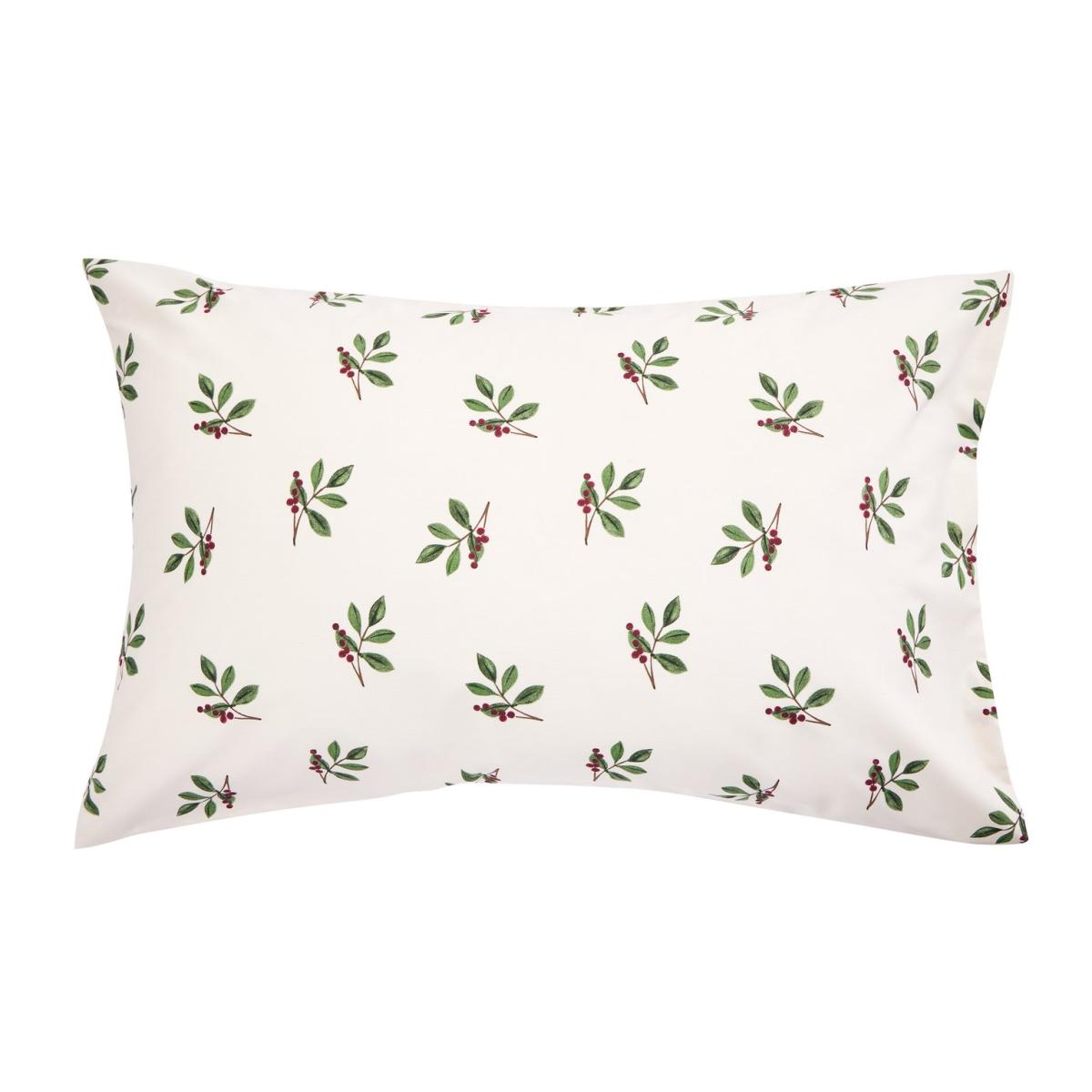 Embrace the seasonal spirit with this charming pair of pillowcases. Printed with a lush foliage, that adorns a soft cream background. 2 pillowcases. Pillowcase style: Standard. Reversible pillowcase (s). 50% polyester, 50% cotton. 144 thread count. Size L75, W50cm. Machine washable. Suitable for tumble drying.