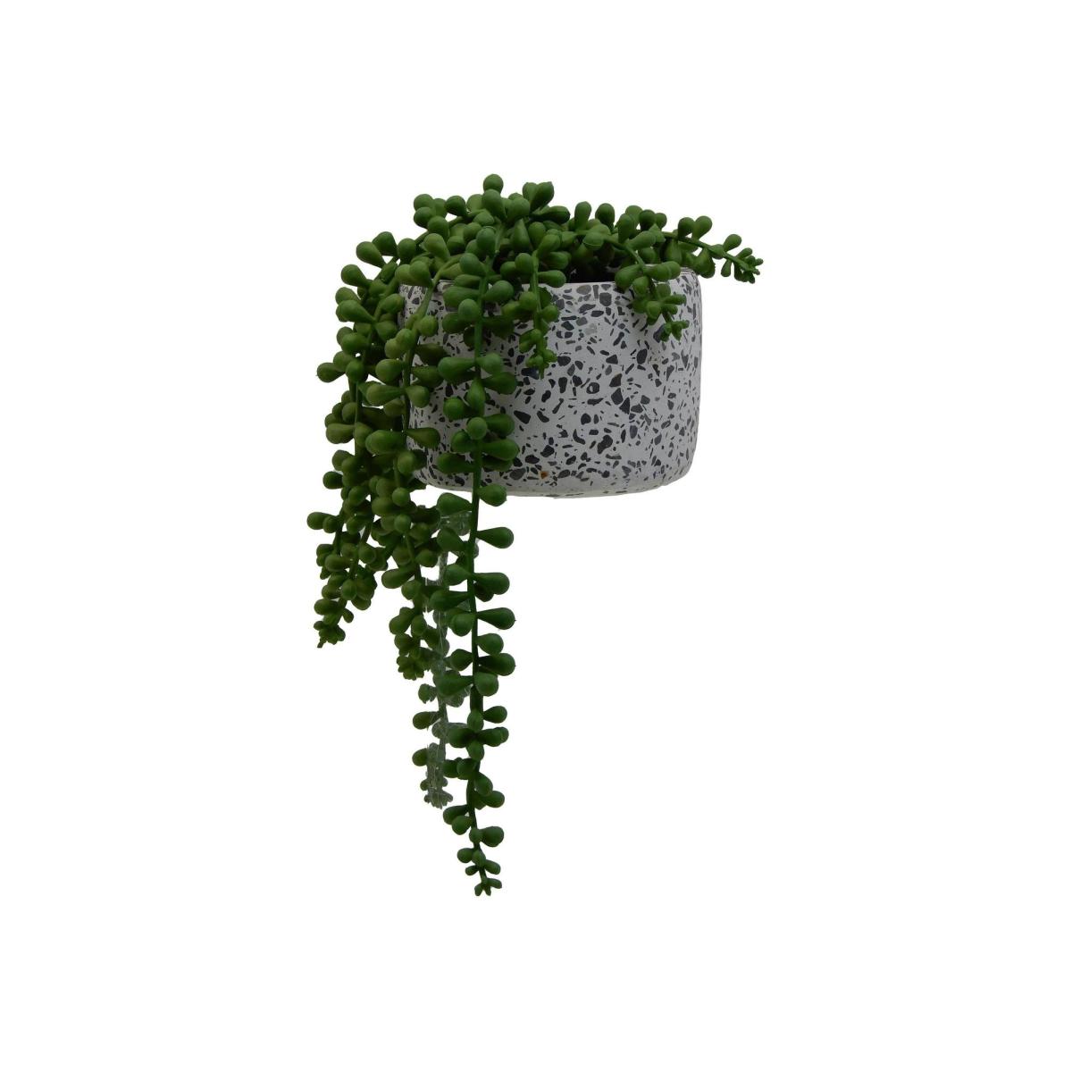 Plump little pods cascade over the side of a timelessly on-trend terrazzo pot. Making our artificial plant perfect to accessorise a desk, kitchen shelf or mantle. Effortlessly elegant, faux plants are a briliant investment as they stand the test of time. And no pruning required. Ever. Size H25.5, W12.5, D12.5cm.