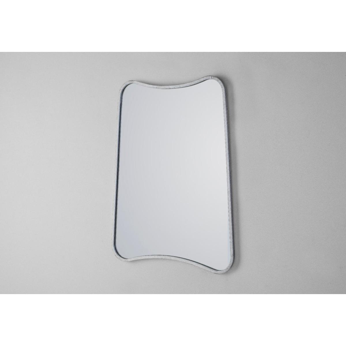 Breathe modernity into your home with the stunning simplicity of the Ari wall mirror. Its large body, with smooth edges and a wider base for that satisfyingly floating effect, is encased in a slim metal frame with a rich silver finish. The Ari is the mirror for those after something understated and a little bit different.