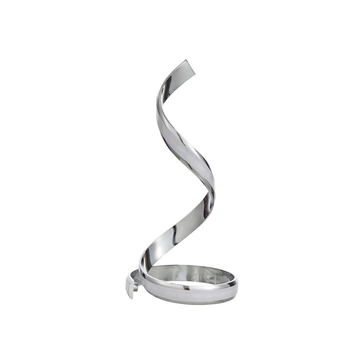 I love this lamp for its sleek, modern design - the twisted chrome finish adds a touch of contemporary flair without feeling overpowering. It works well in minimalist or eclectic interiors, particularly on side tables, console units, or even as a standout piece on a shelf. For practical styling tips, pair it with neutral or monochrome accessories to let the lamp's shape shine through, or place it alongside texture-rich materials like velvet or wood to create contrast. It’s a versatile piece that offers both form and function, perfect for injecting a bit of modern elegance into a variety of interiors.