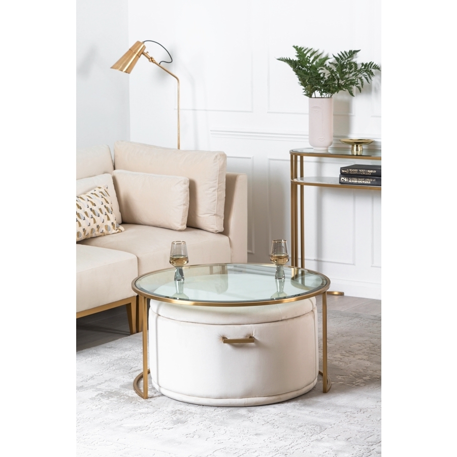 I’m a fan of how the Aria coffee table’s hidden ottoman base adds practical storage without bulk - it’s a great fit for compact or multi-use living rooms. The chalk-coloured upholstery pairs easily with neutral or Scandi schemes, while the brass frame and glass top introduce a modern, slightly luxe edge. For styling, I’d keep the glass surface clear except for a low tray with a couple of design books and a small vessel or candle to maintain an airy feel. Use the ottoman interior to stow throws or extra cushions, and consider placing a textured rug beneath to anchor the metallic legs without competing with the finish.
