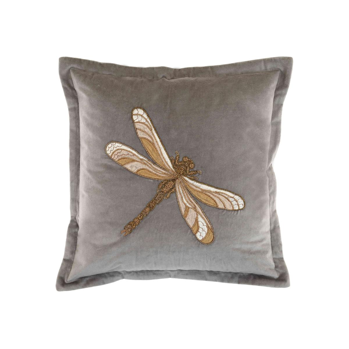 Meet Aria: the ultimate indulgence. This soft velvet cushion ensures comfort, promises style and comes in an array of stunning shades. Why you'll love it Divine dragonfly embellishment. Brings elegance to bedrooms and living spaces. It’s feather-filled so it’s luxuriously soft inside and out. Embroidered by hand. Sourced and designed in India. In a wide choice of colours to suit any decor. What you need to know 100% polyester. 100% feather filling. Zip closure for easy cleaning and filling adjustments. Indoor use only. To maintain cushion plumpness, remove cover and plump cushion interior regularly. Dimensions Height: 50 cm (20 in). Width: 50 cm (20 in).