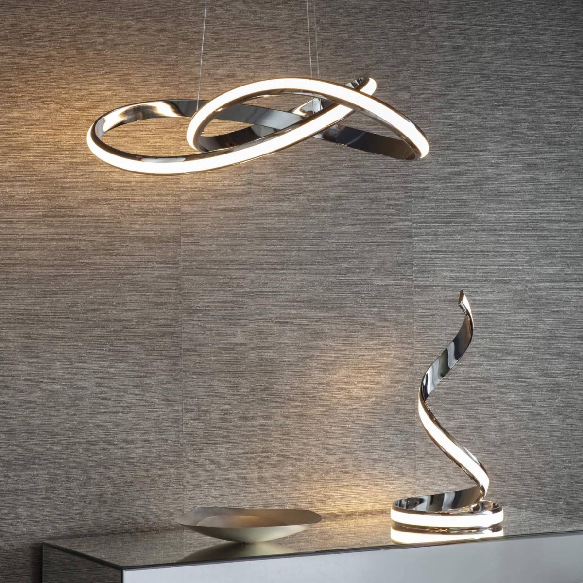 Modern LED pendant ceiling light in polished chrome. A stunning addition to your home, this statement LED pendant is part of the Aria range from Endon. Finished in polished chrome throughout, this ceiling light features an illuminated curve, comes complete with a white diffuser and a warm white, integrated LED. It is set to look stunning in hallways, living rooms and bedrooms. Modern LED pendant ceiling light in polished chrome. A stunning addition to your home, this statement LED pendant is part of the Aria range from Endon. Finished in polished chrome throughout, this ceiling light features an illuminated curve, comes complete with a white diffuser and a warm white, integrated LED. It is set to look stunning in hallways, living rooms and bedrooms.